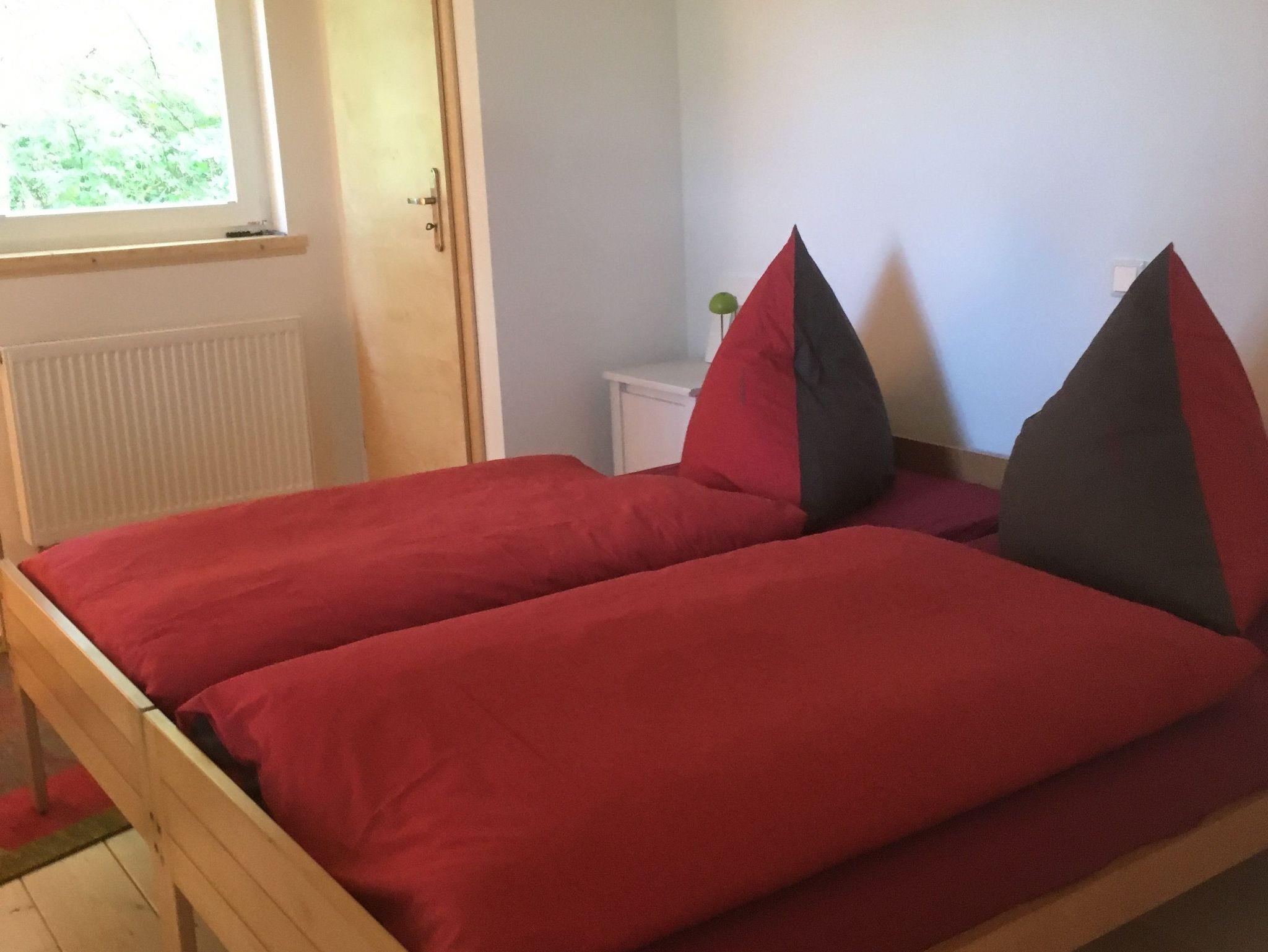 Das Waldhaus bietet mit einem Schlafzimmer, einem Schlafboden und der offenen Küche im Wohnraum inklusive Ofen genügend Platz für bis zu 5 Personen.
