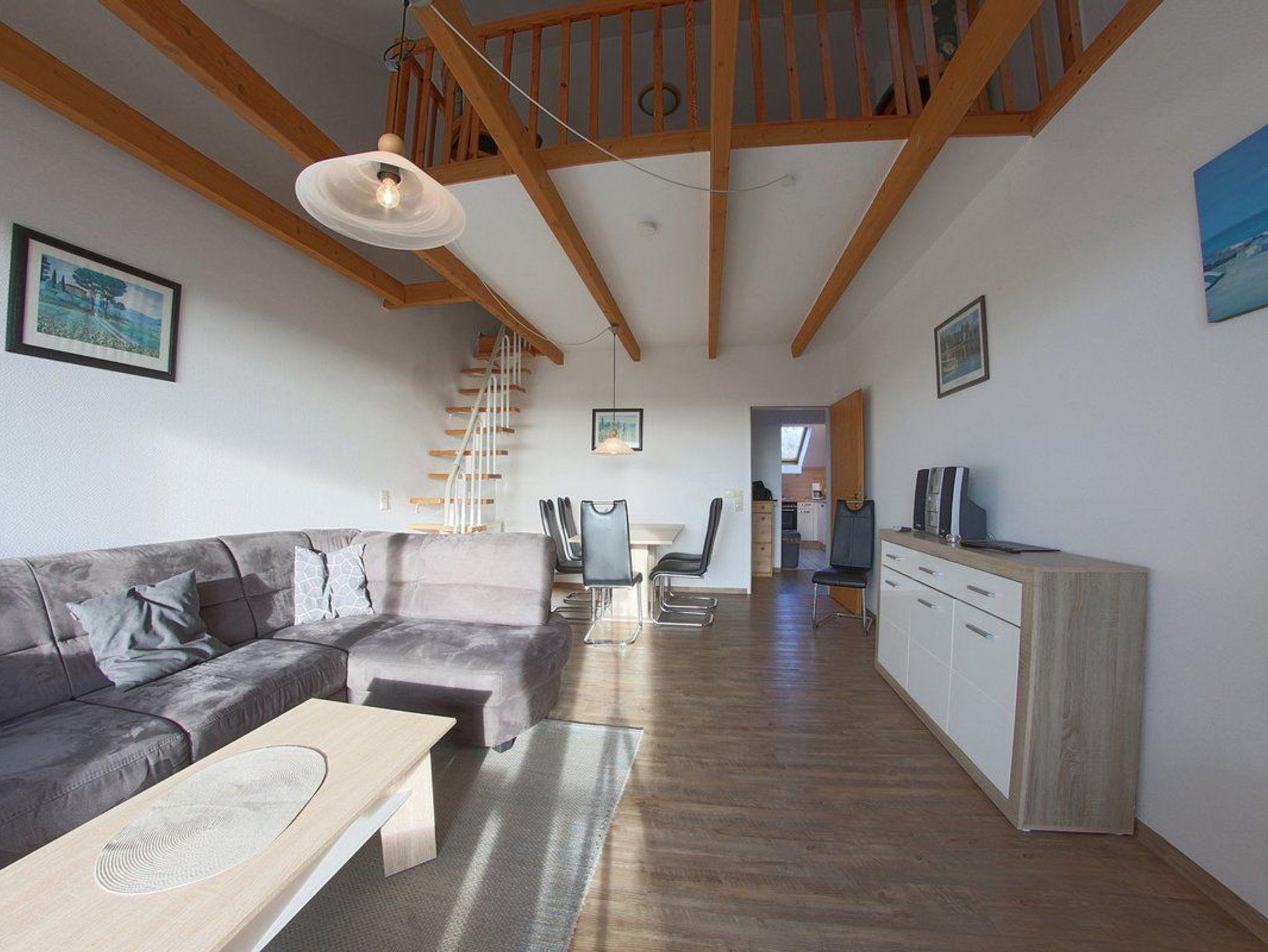 • 2-Zimmer-Ferienwohnung mit Balkon für max. 5 Peronen. Mit 1 Eltern- und 1 Maisionett Schlaf-, Wohn-Essraum und komplett eingerichteter Küche. Duschbad/ WC.