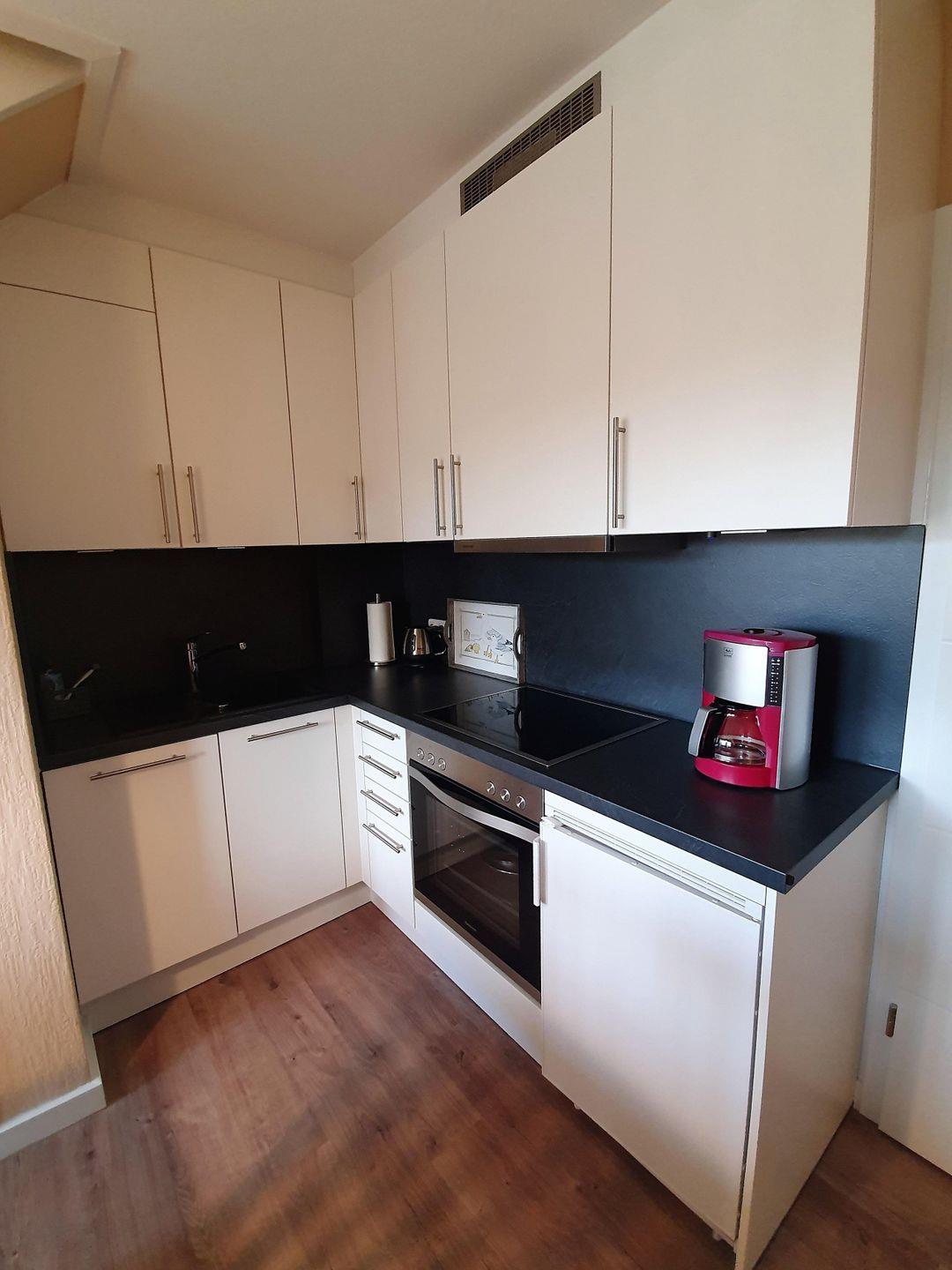 Der Wohnbereich ist auf entspanntes Zusammensein ausgelegt und verfügt über Sofa und Sessel sowie einen Essbereich mit Esstisch. Für Unterhaltung stehen Ihnen ein TV (1 Gerät), Radio und CD-Spieler zur Verfügung; WLAN/Internet ist vorhanden. Die offene Küche ist zum Wohnzimmer hin gestaltet und vollständig ausgestattet: Herd mit 4-Platten-Kochfeld, Backofen, Kühlschrank mit Gefrierfach, Spülmaschine sowie Toaster, Wasserkocher und Kaffeemaschine. Geschirr, Besteck und Küchenutensilien sind ebenso vorhanden, sodass Sie Mahlzeiten unkompliziert selbst zubereiten können.
