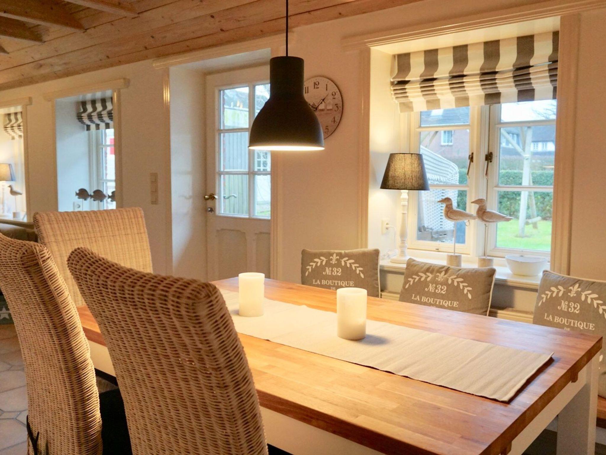 Die Ferienwohnung Hygge befindet sich in einem historischen Friesenhof in Wrixum und wurde zuletzt 2023 renoviert. Sie bietet Platz für 4 Personen und ein Baby und ist im maritimen Stil komfortabel eingerichtet. Die Wohnung befindet sich im Erdgeschoss und verfügt über einen großzügigen Wohn- und Essbereich mit einer modern ausgestatteten Küche. Zwei Schlafzimmer mit einem Doppelboxspringbett und zwei Einzelbetten befinden sich angrenzend an das Wohnzimmer. Das Badezimmer ist geräumig und verfügt über eine Dusche und eine Badewanne. Von der Terrasse aus, die mit Strandkorb und Gartenmöbeln ausgestattet ist, gelangt man direkt in den Wohnbereich. Für ein Babybett ist ausreichend Platz vorhanden, jedoch sind Haustiere nicht erlaubt. In der Garage kann ein PKW mit einer Breite bis 235 cm und einer Länge bis 490 cm geparkt werden. Fahrzeuge mit Dachbox oder Transporter passen aufgrund ihrer Höhe leider nicht in die Garage. Von der Unterkunft aus können ruhige Radtouren zu den umliegenden Inseldörfern oder durch die weite Landschaft unternommen werden. In weniger als 10 Minuten mit dem Fahrrad erreicht man den Ort Wyk mit seinen Sehenswürdigkeiten wie dem Hafen, der Promenade mit Geschäften und Gastronomie, dem Wellenbad, der Schutzstation Wattenmeer und dem langen Sandstrand mit Blick auf die Halligen. In Wrixum gibt es einen Bäcker, zwei Restaurants und einen Fahrradverleih in fußläufiger Entfernung von der Wohnung.