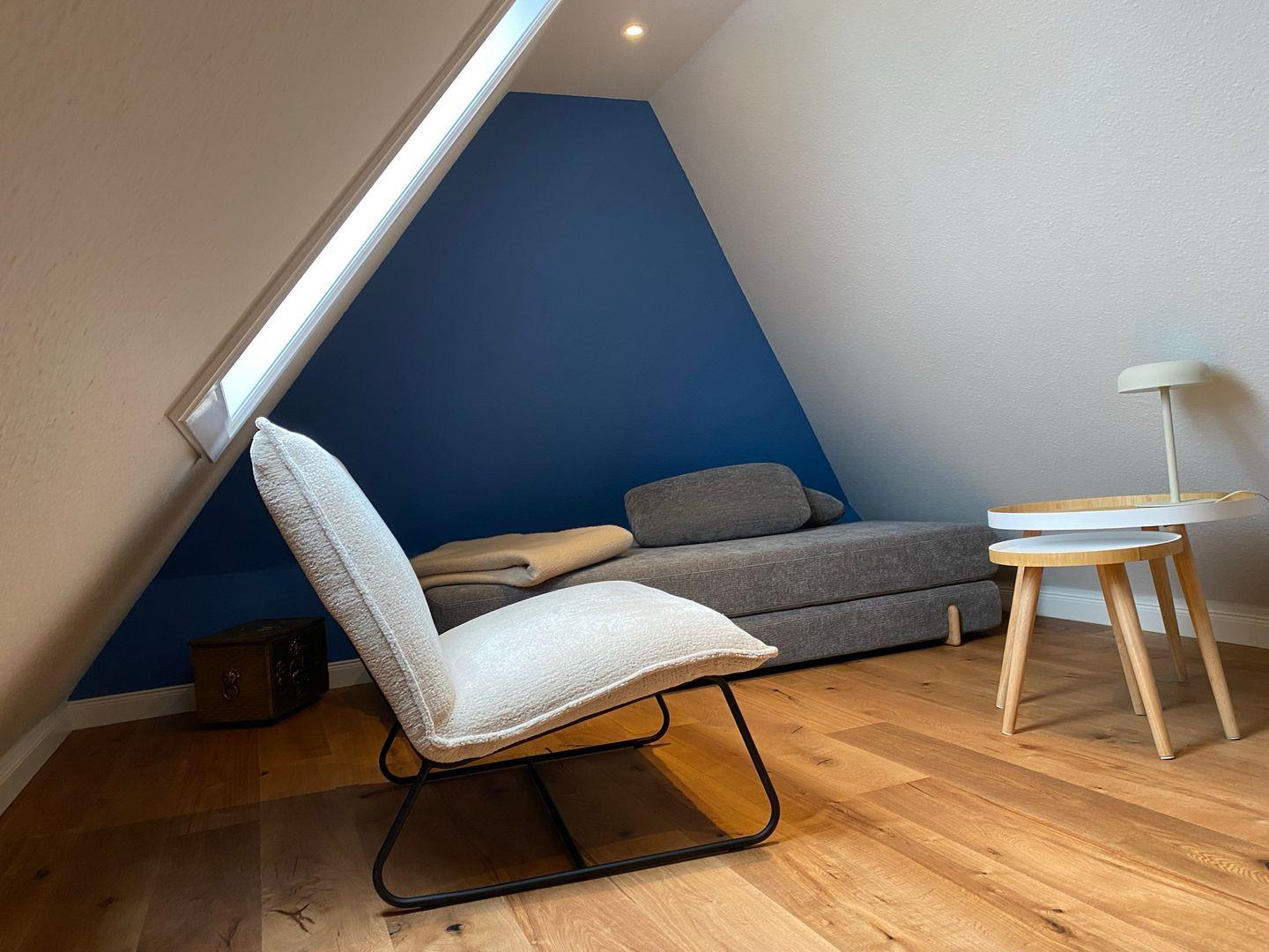 Im gemütlichen Wohnbereich finden Sie ein bequemes Sofa, zwei Sessel, einen SAT-TV und einen CD-/DVD-Player vor, damit Sie sich wie zu Hause fühlen können.
