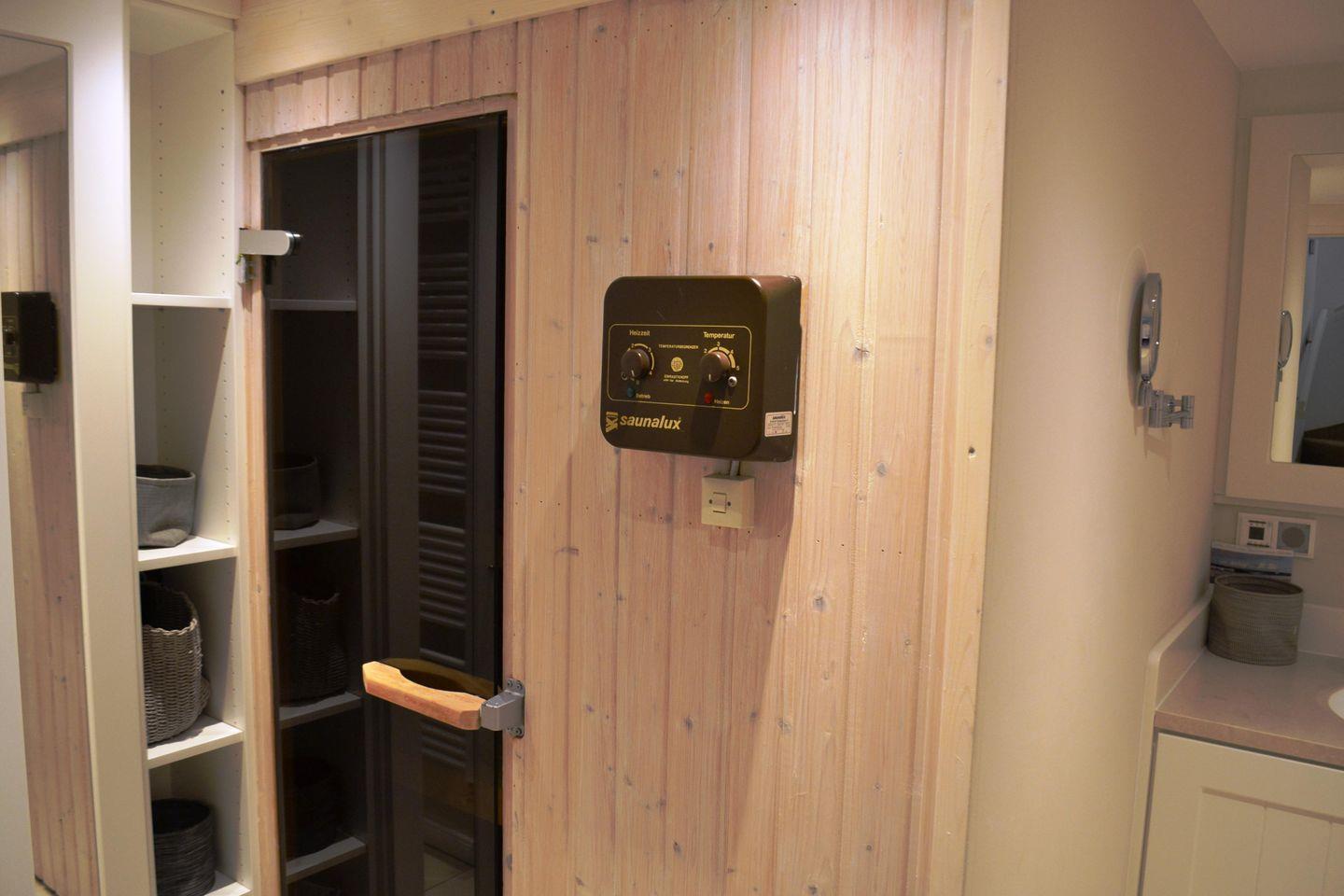 Im Erdgeschoß dieses Hauses befindet sich ein Gäste-WC und das sehr gemütliche Wohnzimmer (Laura Ashley) mit offener Küchenecke, welche sämtlichen Komfort bietet mit Induktionsherd. Im Obergeschoß sind 2 Schlafzimmer (1 x französisches Bett, 1 x Doppelbett) sowie Duschbad/WC. Im Keller des Hausteils befinden sich eine finnische Sauna und die Waschmaschine.