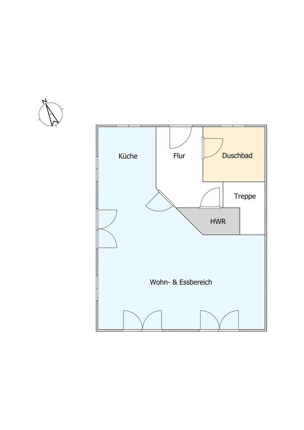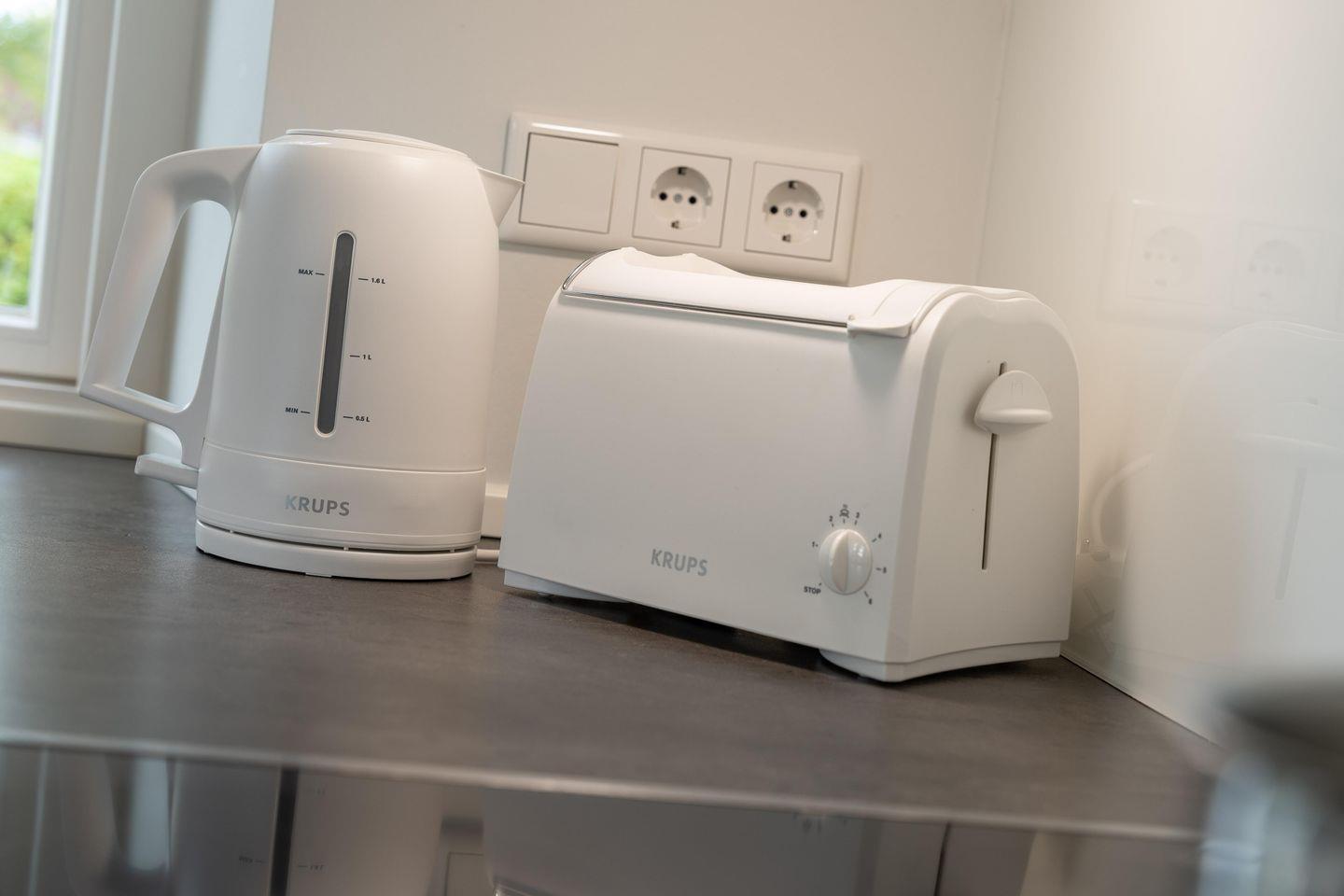 Im Erdgeschoss befinden sich der großzügige Wohn- und Essbereich mit offener Küche sowie ein Bad mit bodengleicher Dusche. Über den Essbereich gelangen Sie direkt auf die eigenen Terrassen und in den Garten. Der Original Mylin-Kachelofen sorgt auch an kühleren Tagen für eine wohlige Atmosphäre. Im Badezimmer stehen Ihnen eine Waschmaschine und ein Trockner zur Verfügung - selbstverständlich kostenlos!