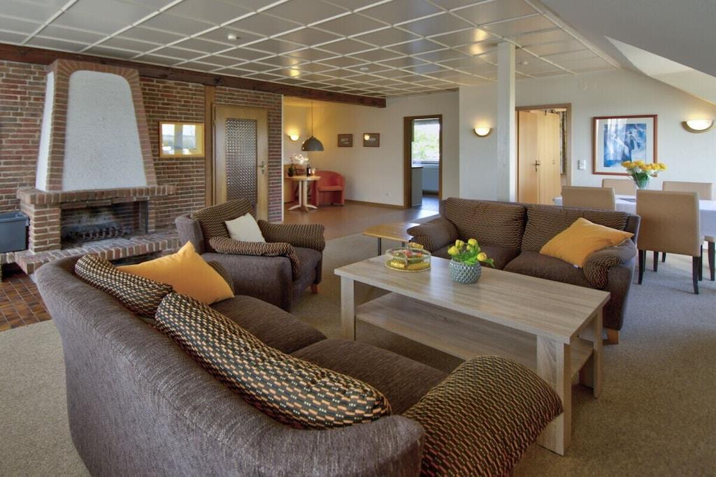 The spacious 90 m² four-person holiday apartment by the swimming pool with a awesome panoramic view of the Burger Binnensee and the Baltic Sea.
