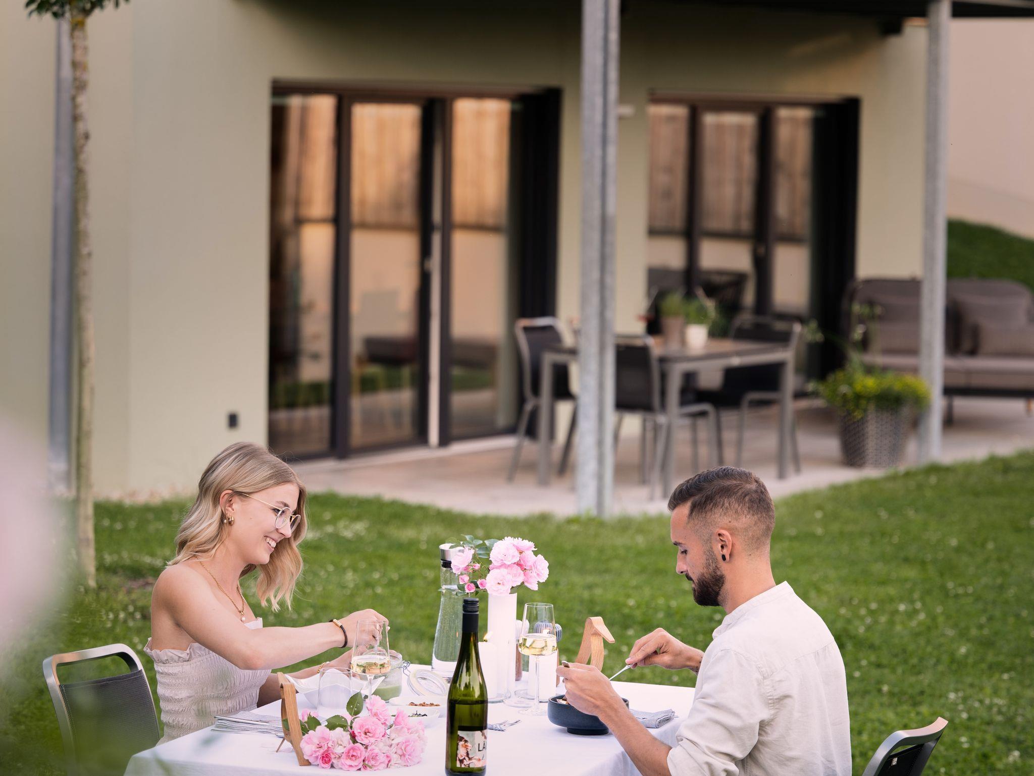 Diese moderne Ferienwohnung bietet auf 80?qm Platz für bis zu 4 Personen. Der großzügige Wohn- und Essbereich (26 qm) mit offener Designküche lädt zum Verweilen ein. Zwei gemütliche Schlafzimmer (20?qm und 11?qm) garantieren erholsame Nächte. Das moderne Bad (8 qm) überzeugt mit einer bodengleichen Walk-In Regendusche. Auf der 15?qm großen Terrasse mit hochwertigem Mobiliar und Tagesbett können Sie den Blick in den weitläufigen Garten genießen.