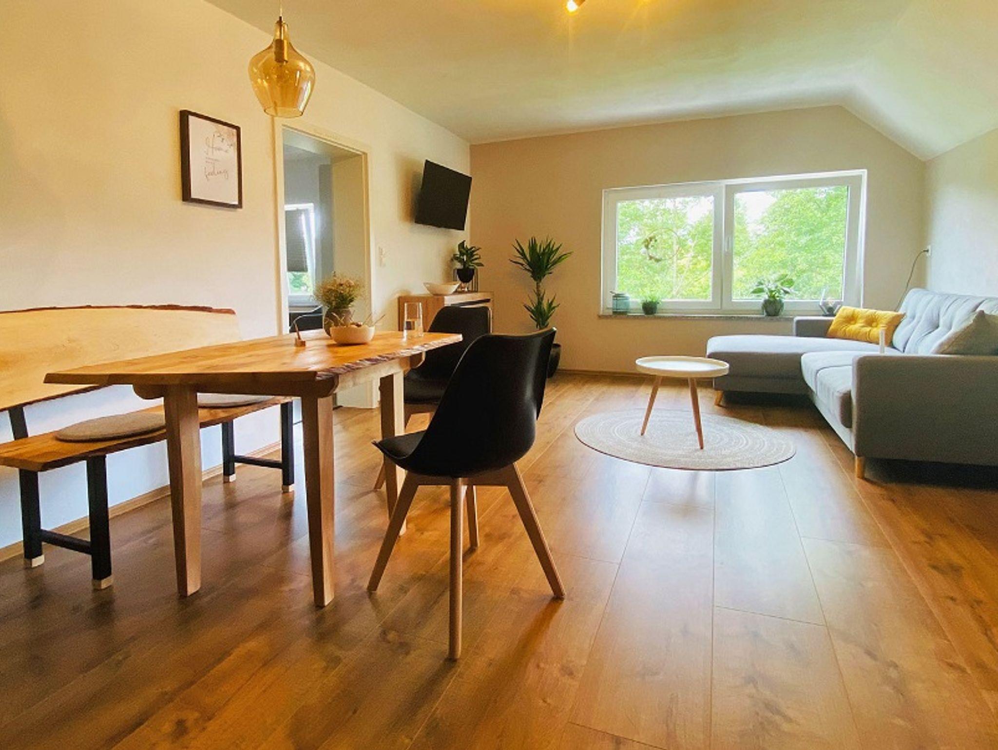 Die moderne 5-Sterne Ferienwohnung bietet einen großen und gemütlichen Wohn- /Essbereich. Genießt den herrlichen Rundumblick aus den großen Fenstern oder dem geräumigen Balkon.