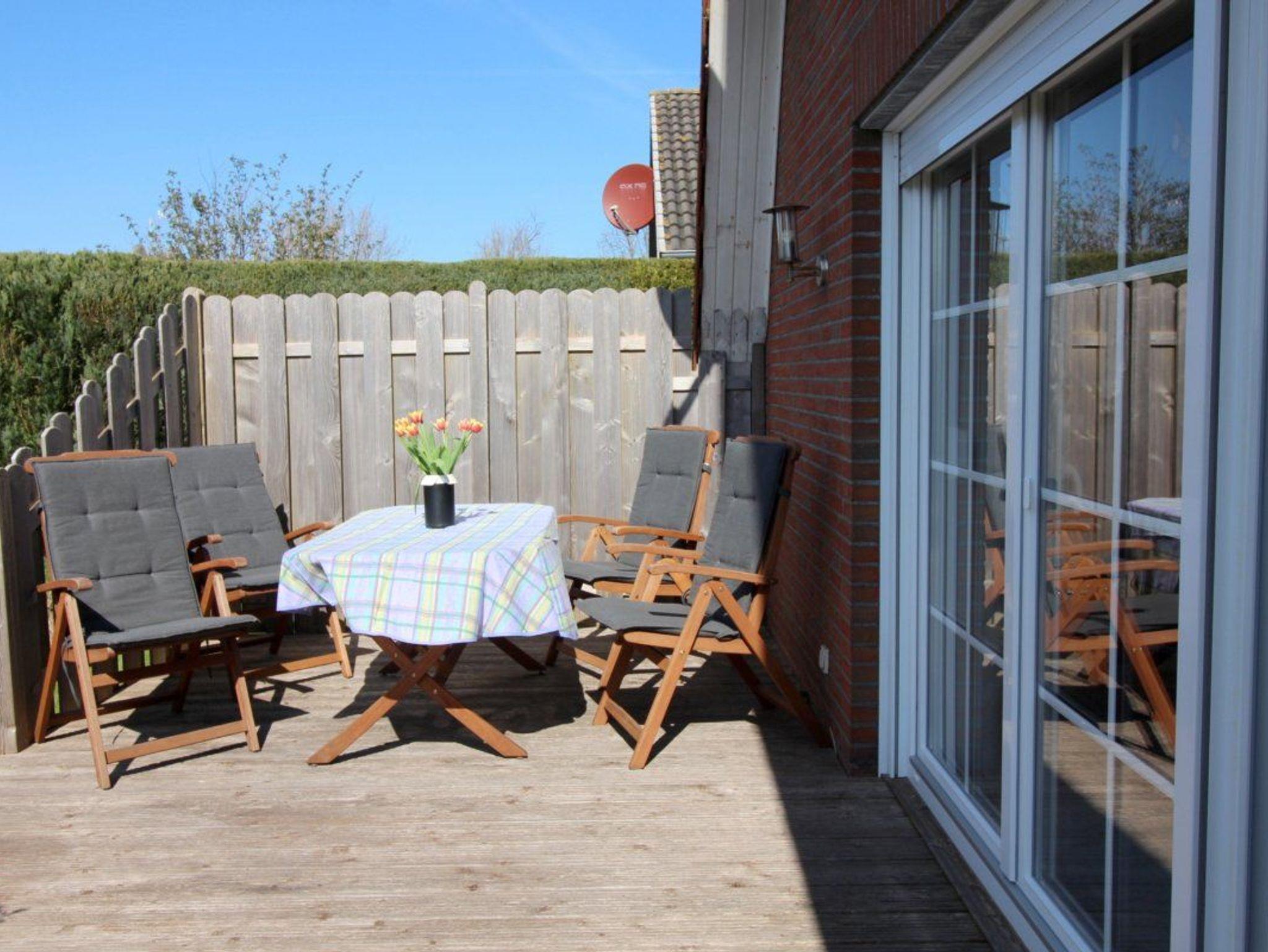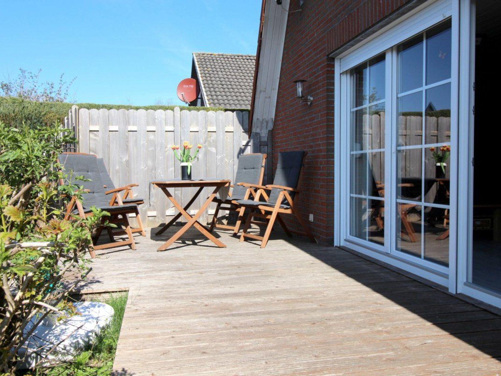 Der gemütlich angelegte Aussenbereich lädt direkt zum entspannen ein. Hier können Sie in aller Ruhe die Sonnenstunden oder aber auch das raue Klima in den Sturmwochen geniessen. Gartenmöbel und Rasenfläche zum Spielen.