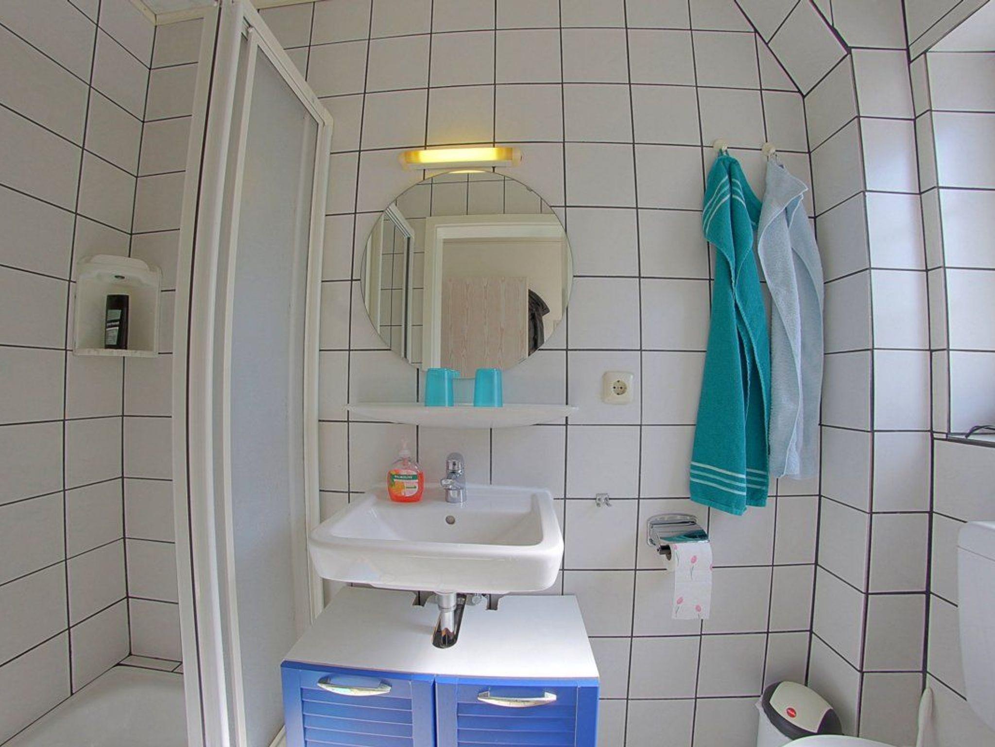 Das Duschbad mit Waschmaschine befindet sich ebenfalls im Erdgeschoss.