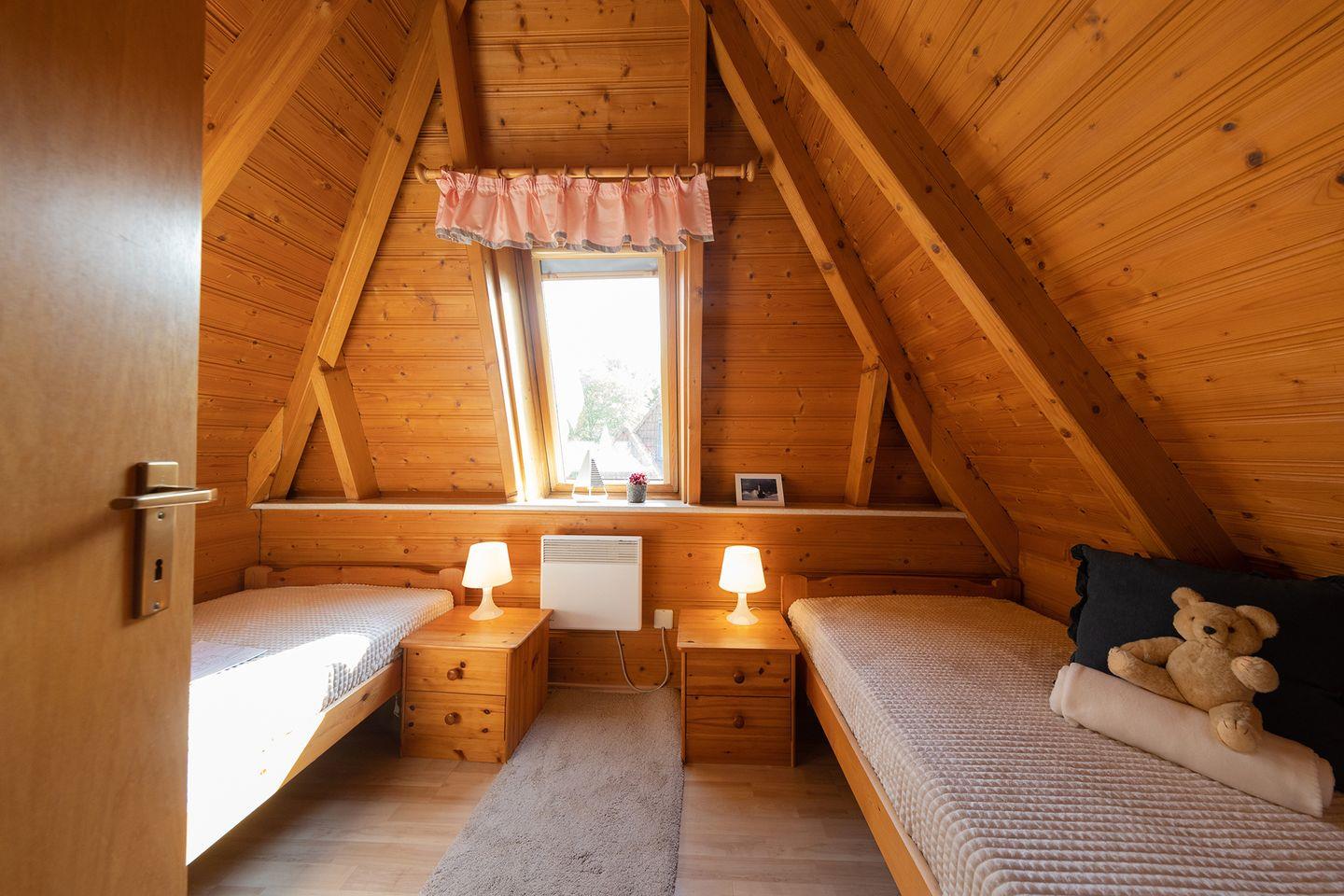 Im Erdgeschoss erwarten euch ein offener Wohnbereich mit Kaminofen, eine voll ausgestattete Küche mit Ceranfeld, Backofen, Spülmaschine und vieles mehr sowie ein gemütlicher Essplatz. Zwei Schlafzimmer mit Laminatboden, ein modernes Bad mit Dusche und Fenster sowie ein separates Gäste-WC sorgen für Komfort. Kinderbett, Hochstuhl, Treppengitter und Steckdosensicherungen sind ebenfalls vorhanden. Das Haus ist durch und durch familienfreundlich.