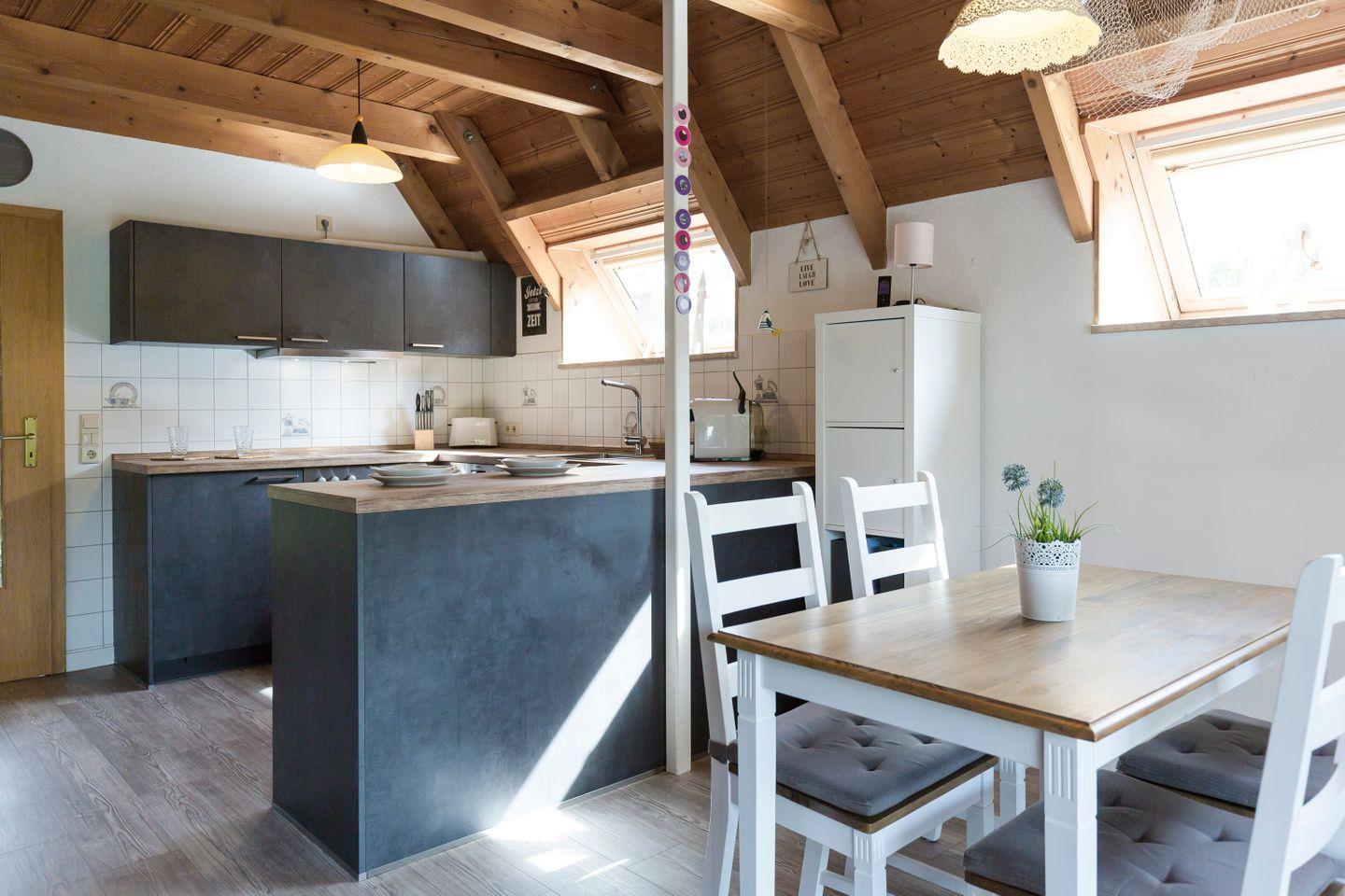 Wenn die ersten Sonnenstrahlen durch die Terrassentür fallen und der Duft von Kaffee durch das Haus zieht, beginnt der Tag an der Nordsee so, wie er soll: entspannt und voller frischer Luft. Dieses komfortable Ferienhaus für Familien an der Nordsee bietet auf 68?m² Platz für bis zu vier Personen. Im Erdgeschoss befinden sich ein Wohn-Essbereich mit Kaminofen, eine offene, komplett ausgestattete Küche sowie ein Duschbad mit WC und Waschmaschine - alles offen gestaltet für gemeinsame Familienzeit.