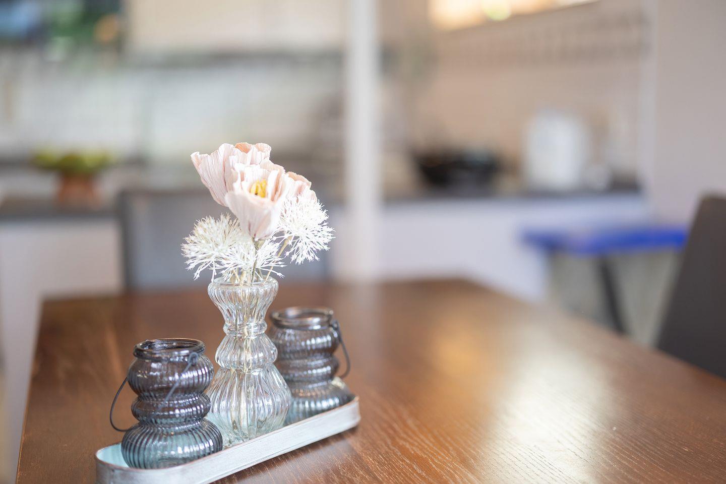 Draußen plätschert die Wasserlöse, der eingewachsene Garten hat diese norddeutsche Ruhe, die man erst abends richtig wahrnimmt.