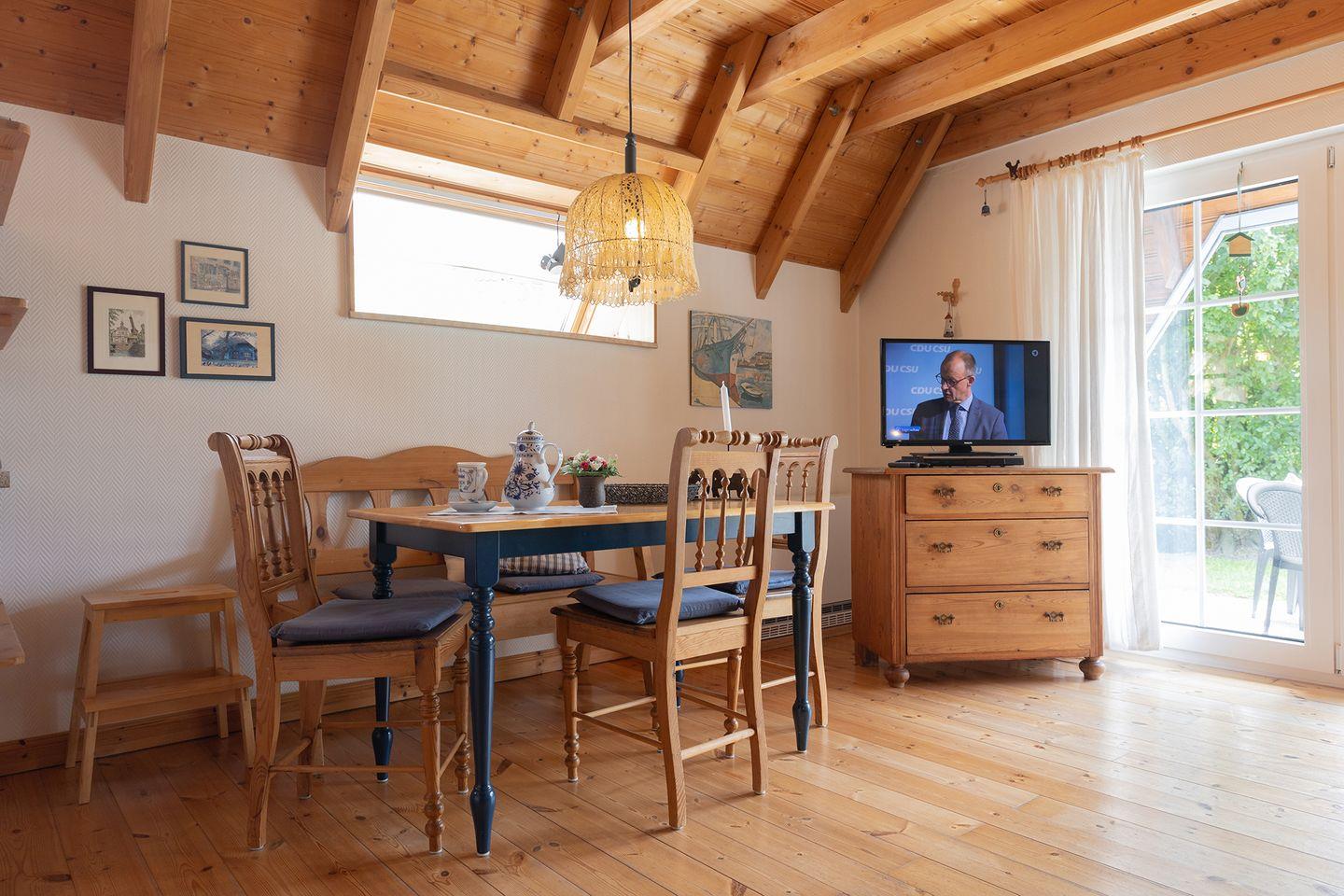Wenn das Kaminfeuer leise knackt und draußen der Wind über die Felder zieht, wird der Nordseeurlaub mit Kindern in Medemsand 17 besonders gemütlich. Das freistehende, familienfreundliche Ferienhaus für bis zu vier Personen liegt in Dorum-Neufeld an der Nordsee, in strandnaher (1km) Lage mit Garten und zwei Etagen: unten ein heller Wohnbereich mit Holzfußboden, offener Küche, Gäste-WC und Zugang zur möblierten Terrasse. Oben zwei Schlafzimmer mit allergikerfreundlichem Vinylboden – perfekt für erholsame Nächte. Kaminofen, Spiele, WLAN und Blu-ray-Player bieten auch drinnen viel Abwechslung.