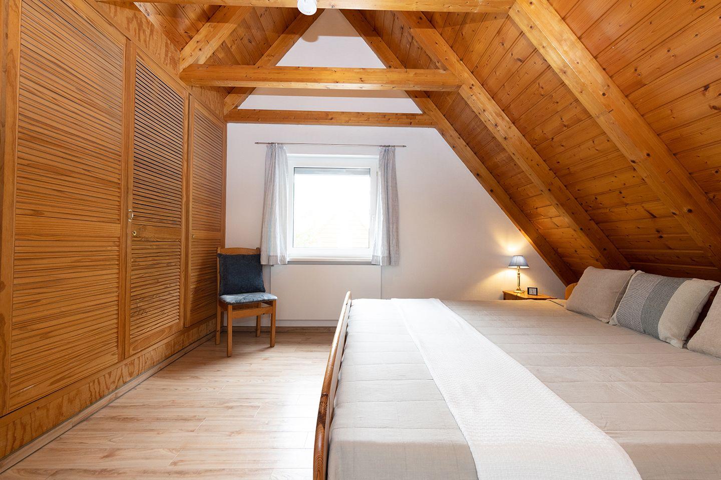 In Strandnähe (1km) gelegen, punktet es mit einem dicht bewachsenen Garten, Terrasse mit Sitzplätzen für sechs Personen und zwei Sonnenliegen. Vier Zimmer, zwei vollwertige Duschbäder sowie ein Kaminofen im Wohnbereich sorgen auch an kühleren Tagen für Komfort. Die offene Küche ist komplett ausgestattet, alle Schlafräume bieten Rückzugsmöglichkeiten – darunter ein Schlafzimmer im Erdgeschoss mit Einzelbetten, das Elternzimmer mit Doppelbett und ein weiteres mit getrennten Betten oben. Kinderbett und Hochstuhl sind vorhanden. Im Badezimmer steht eine eigene Waschmaschine zur Verfügung.