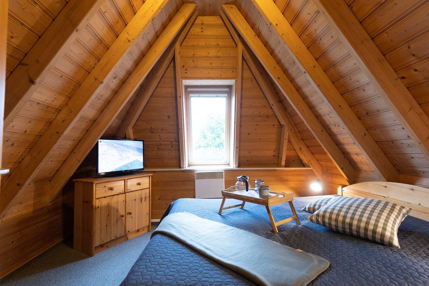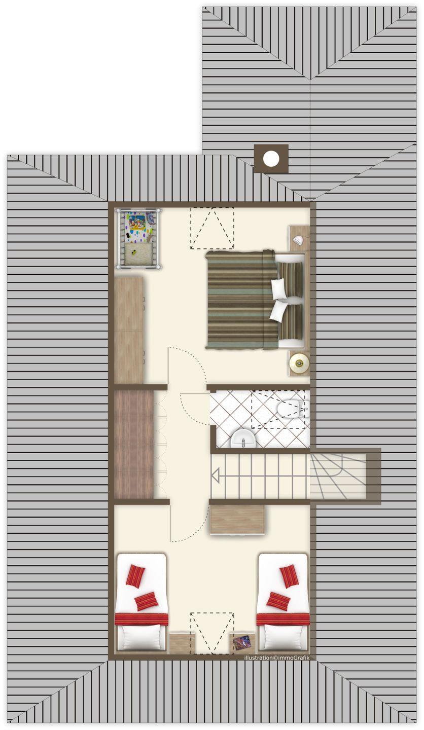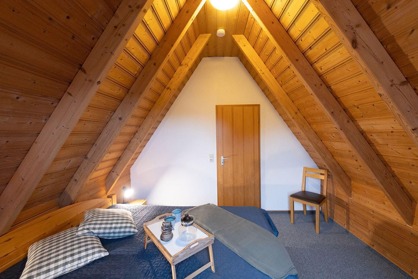 Auf 85?m² und zwei Etagen finden Familien viel Raum zum Ankommen. Im Erdgeschoss: ein helles Wohn-Esszimmer mit bequemer Couch, Kaminofen und Esstisch, eine komplett ausgestattete Küche, ein Schlafzimmer mit zwei Einzelbetten sowie ein Duschbad. Oben: ein Elternschlafzimmer mit Doppelbett, ein weiteres Kinderzimmer mit zwei Einzelbetten und ein zusätzliches WC.