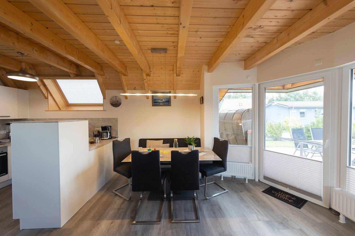 Draußen lädt die geschützte Terrasse mit Grill, Sonnenliegen und Sitzplätzen für sechs Personen zum Verweilen ein. Kinderreisebett und Hochstuhl sorgen für entspannten Urlaub. Watt’n Bad, der Kutterhafen und kleine Lokale mit Meerblick sind gut zu Fuß erreichbar - für alle, die Natur, Ruhe und Nordseeluft lieben.