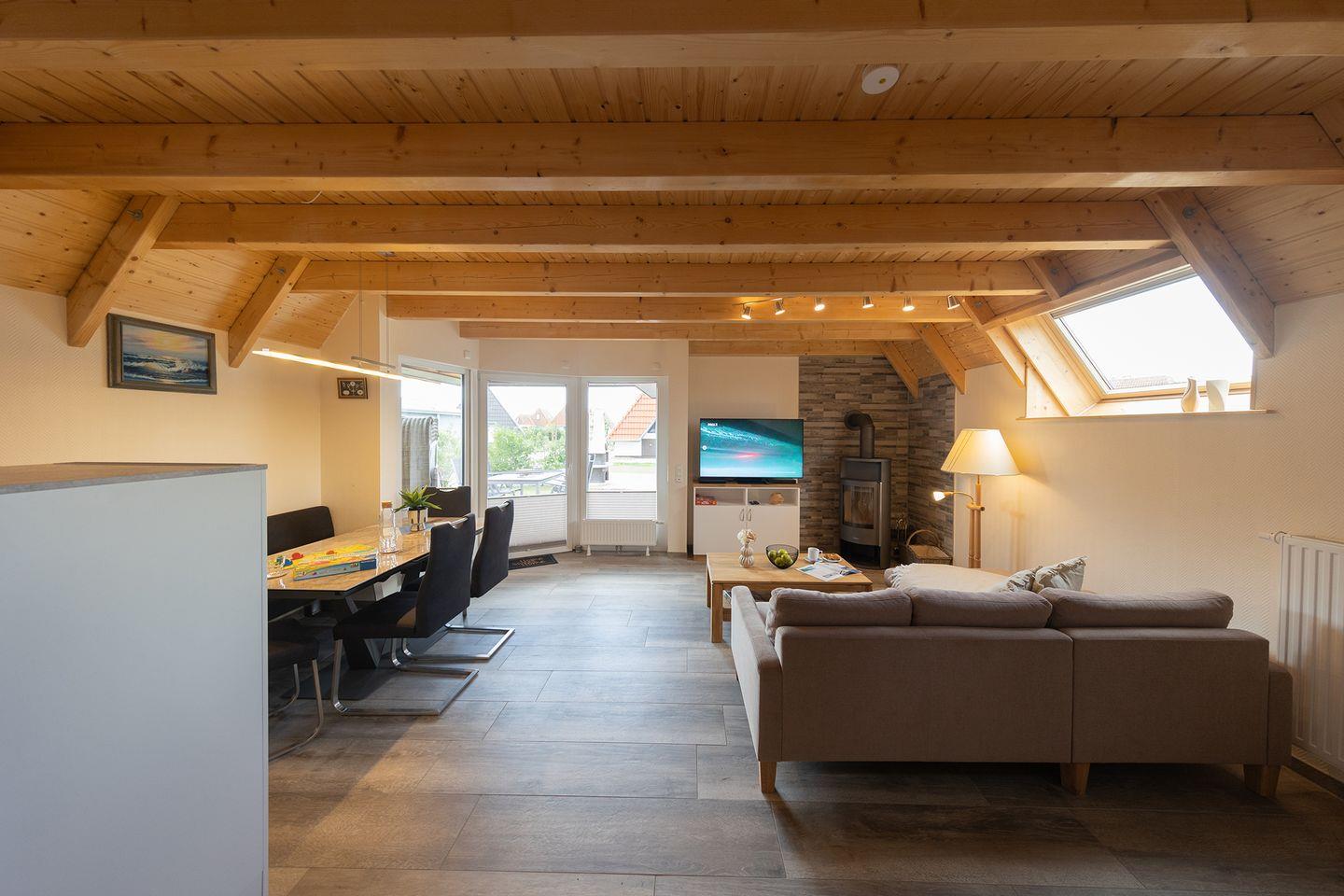 Ein Haus wie gemacht für Familienzeit: In diesem modernen Ferienhaus im Marschland von Dorum-Neufeld fühlen sich bis zu sechs Personen schnell zuhause. Im Erdgeschoss erwartet euch ein großzügiger Wohn-Essbereich mit Kaminofen, eine komplett ausgestattete offene Küche, ein Schlafzimmer mit zwei Einzelbetten und ein Duschbad mit WC - alles freundlich gefliest. Im Obergeschoss befinden sich das Elternschlafzimmer mit Doppelbett, ein weiteres Zimmer mit getrennt stehenden Betten sowie ein zusätzliches WC. Der Boden hier ist mit Laminat ausgelegt, angenehm und pflegeleicht.