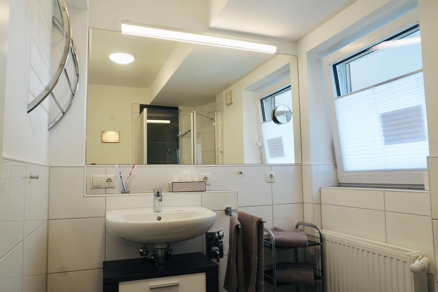 Das Penthouse umfasst zwei geschmackvoll eingerichtete Schlafzimmer mit Verdunkelungsmöglichkeiten – eines mit einem gemütlichen Doppelbett (2,00 m x 2,00 m) und das andere mit einem hochwertigem Boxspringsofa (1,60 x 2,00 m). Der Wohnbereich lädt mit einem bequemen Sofa und einem großen LED-TV zum Verweilen ein. Die moderne Küche ist komplett ausgestattet – ob Geschirrspüler, Backofen, Mikrowelle oder Cerankochfeld, hier fehlt es an nichts. Ein stilvolles Badezimmer mit bodengleicher Dusche und Tageslicht runden den Komfort ab.