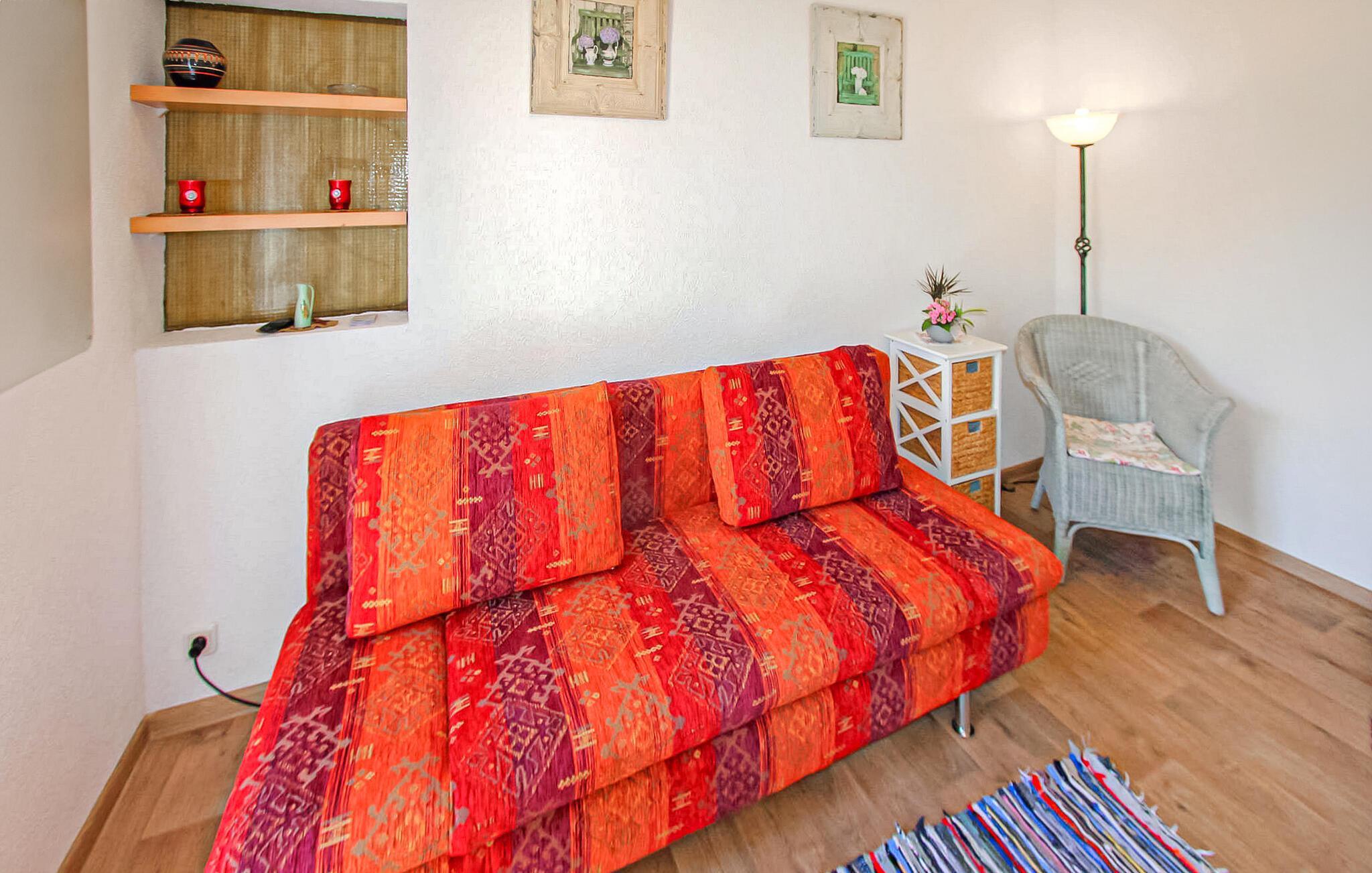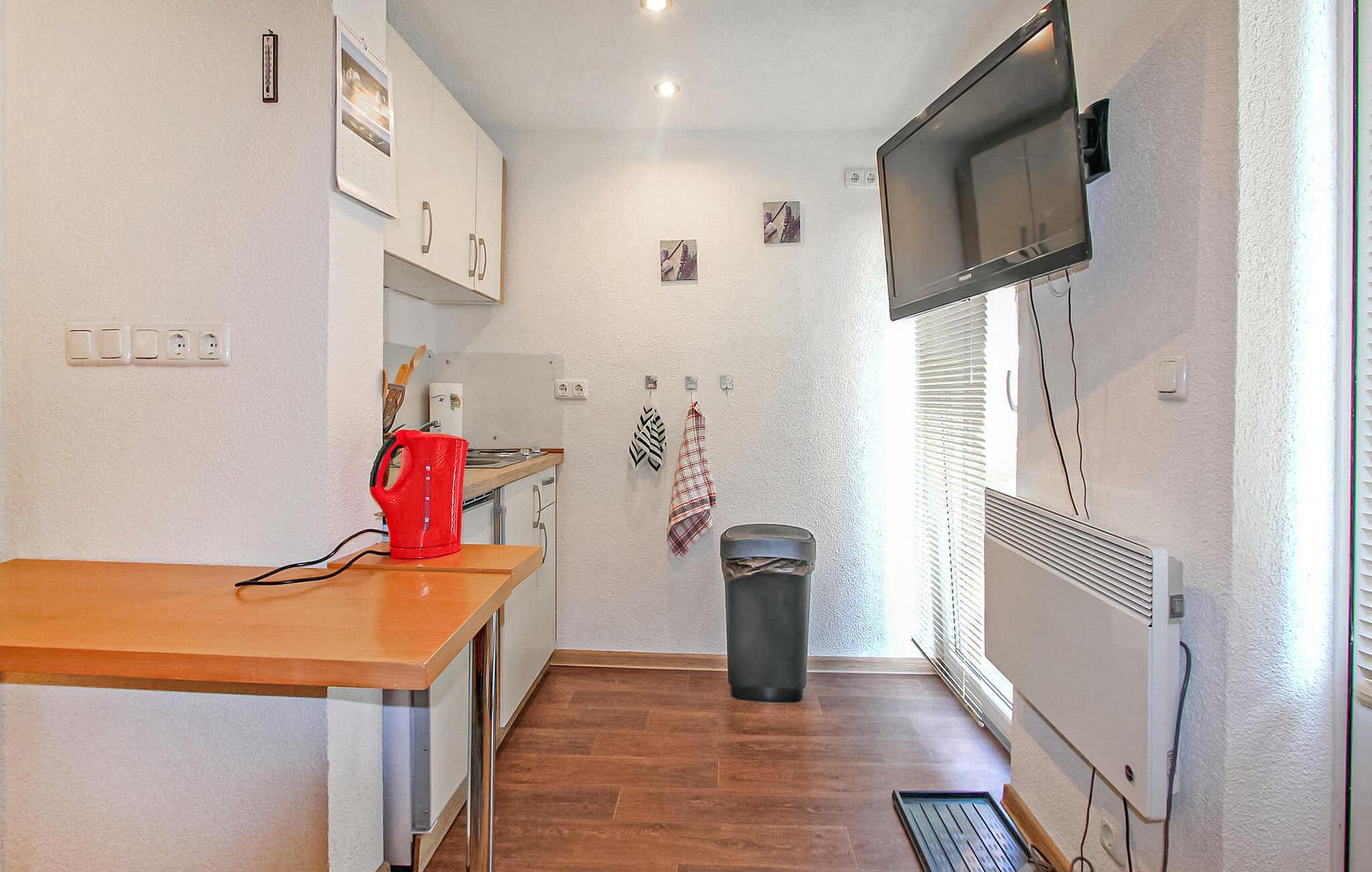 Den lille ettroms ferieleiligheten, som egner seg godt for mosjonister/forretningsreisende, ligger i et separat uthus på eierens 1000 kvm store boligeiendom i et rolig boligområde. Leiligheten ble totalrenovert i 2018 og er utstyrt med sovesofa, flatskjerm-TV, radio, kjøkkenkrok (elektrisk kokeplate, kjøleskap med fryser, diverse kjøkkenutstyr), dusj/WC og elektrisk oppvarming. Det er W-LAN, en møblert uteservering, solsenger, grillfasiliteter, sykkelrom og parkeringsplass. Totalprisen inkluderer sengetøy, håndklær, vann- og energiforbruk og sluttrengjøring. Husdyr er ikke tillatt i denne boligen.