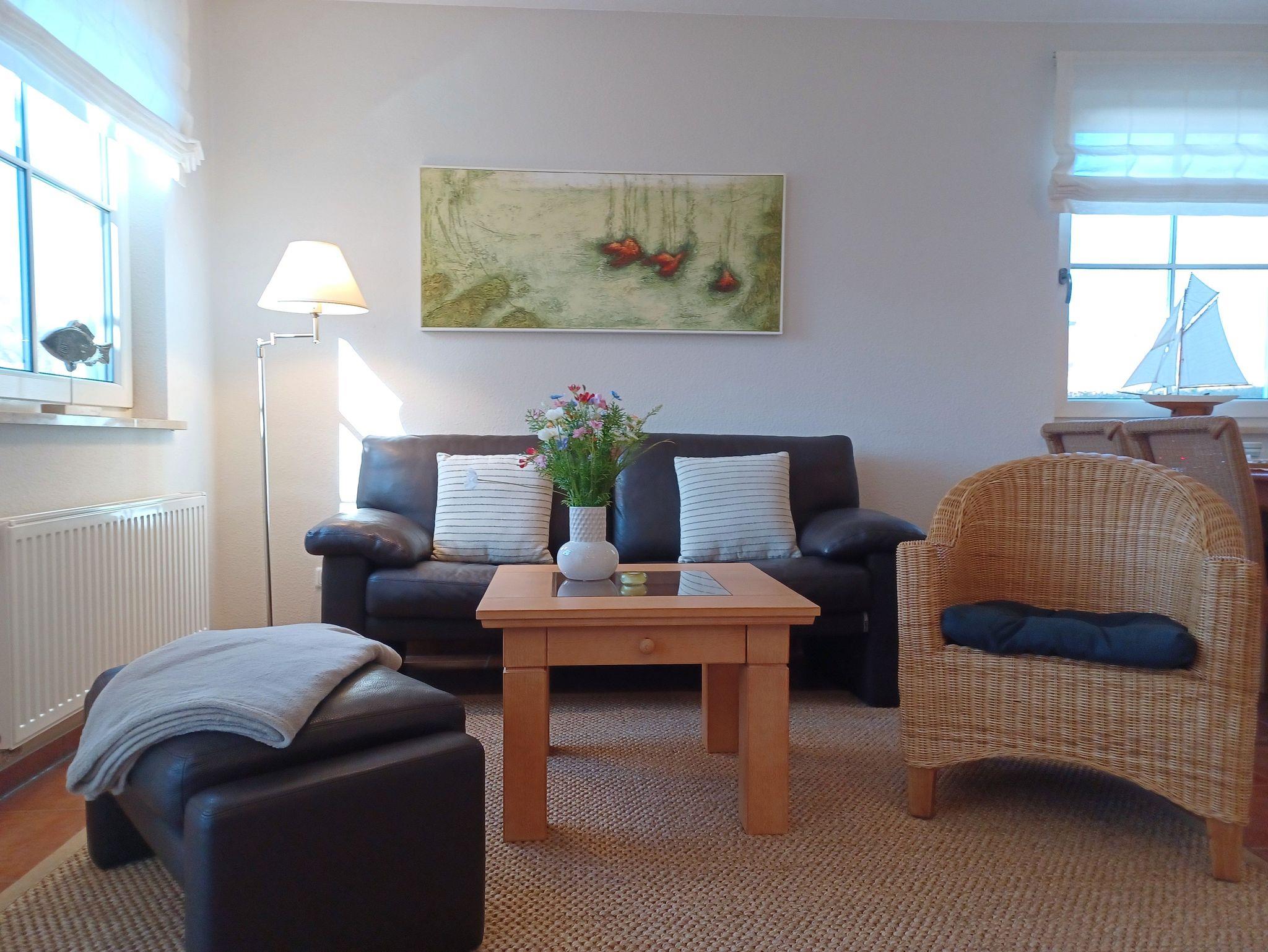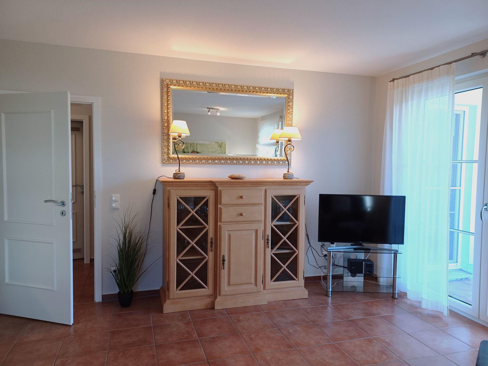 in der Wunderschönen, lichtdurchfluteten Vollkomfortwohnung im Erdgeschoss mit Terrasse (Süd- West- Ausrichtung) lädt zu jeder Tageszeit zum entspannen ein . Die Ferienwohnung liegt in sehr ruhiger Lage am Ortsrand Nähe des Boddens und Hafen. Der großzügige Wohnraum ist mit viel Liebe zum Detail ausgestattet worden. Die offene Küchenzeile verfügt über einen Essbereich, einen Geschirrspüler, Cerankochfeld, Backofen, Kaffeemaschine, Toaster und einer weiteren umfangreichen Ausstattung. Im Bad finden Sie eine Dusche und eine Waschmaschine. Das Schlafzimmer wurde mit einem Doppelbett 1,80 x 2,00 m ( getrennte Matratzen ) und einem Kleiderschrank mit viel Stauraum, das 2. Schlafzimmer ist mit einem Einzelbett 0,90 x 2,00 m ausgestattet. Die Wohnung ist mit Fliegenschutz ausgestattet. Der Strand liegt in ca. 10 min. Entfernung.. Für unsere Gäste steht auf dem Grundstück ein Fahrradschuppen der abschließbar ist zur Verfügung. Die Wohnung wird inclusive Bettwäsche übergeben, Handtücher können Sie in der Zimmervermittlung für 7,00 pro Person (1 Badetuch, 1 Handtuch) zubuchen. Der Parkplatz befindet sich direkt am Grundstück. Nur für 3 Erwachsene zugelassen !