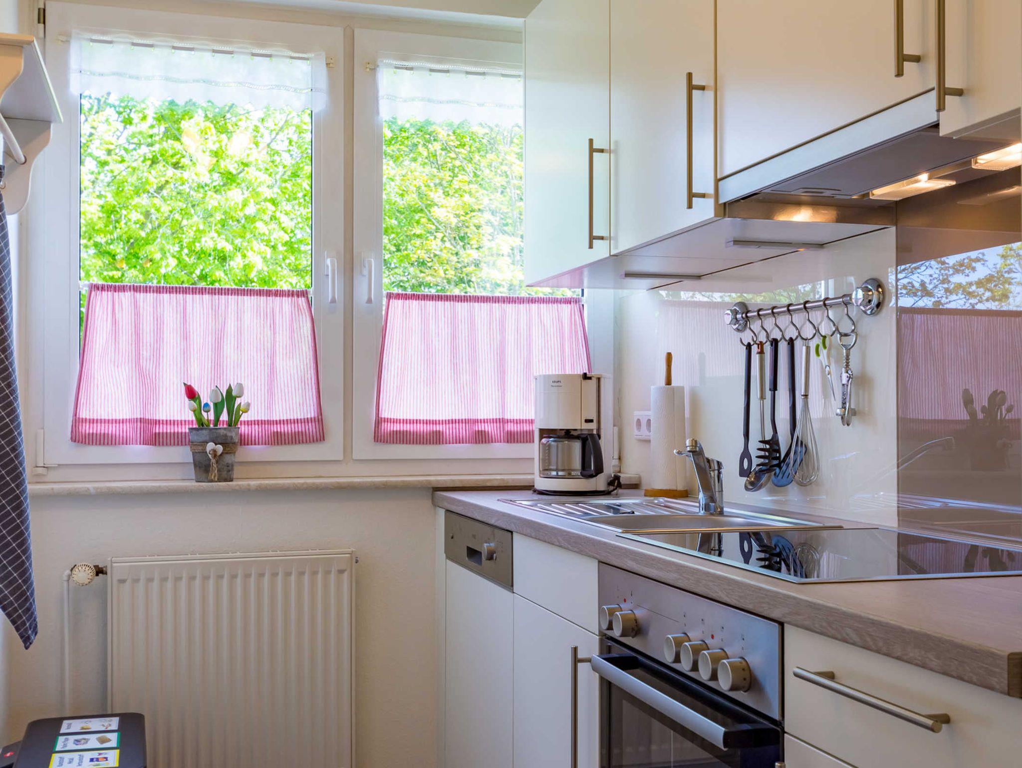 Die Wohnung für zwei Personen mit zirka 40 qm und einem kleinen Balkon, hell und gemütlich eingerichtet, ist nach Süd-Süd-West ausgerichtet. Endreinigung, Verbrauchskosten, Kabel-TV, W-LAN, Bettwäsche und Handtücher sind inklusive. Durch die separate Küche bietet die Unterkunft für ein Einzimmerappartement viel Platz im kombinierten Wohn- und Schlafbereich.