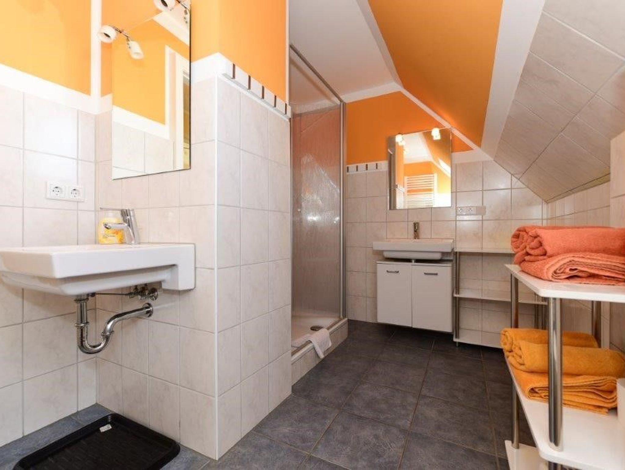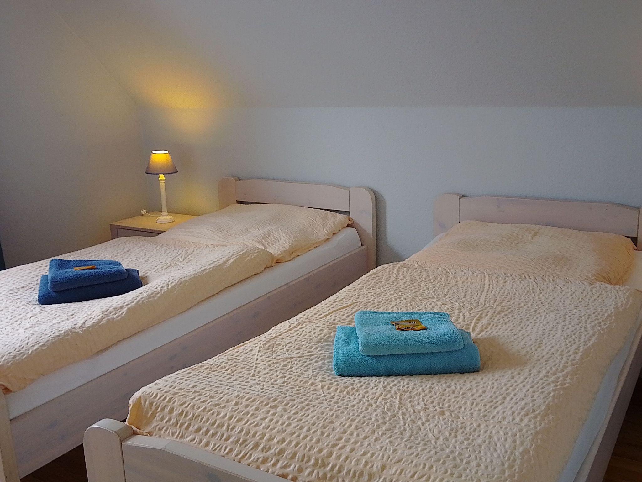 Die helle, freundliche Obergeschosswohnung ist 80m² groß und bietet Platz für 2 bis 5 Personen. Es erwartet Sie eine geräumige Ferienwohnung mit einer separaten Küche, einem gemütlichen Wohnzimmer mit einer Essecke, drei Schlafzimmern und einem Duschbad. Ein schöner Gartenplatz mit Strandkorb lädt zum Entspannen ein. Ihre Fahrräder können untergestellt werden und es steht ein Stellplatz für Ihren PKW zur Verfügung.