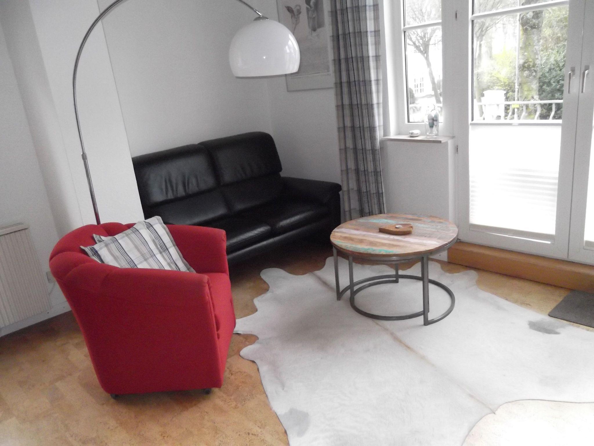 Das strandnah gelegene Stadthaus liegt am Südstrand und ist nur 200 Meter vom Badestrand entfernt. Die helle Hochparterrewohnung ist 40m² groß und hat einen schönen Balkon, den Sie vom Wohnzimmer aus erreichen können.