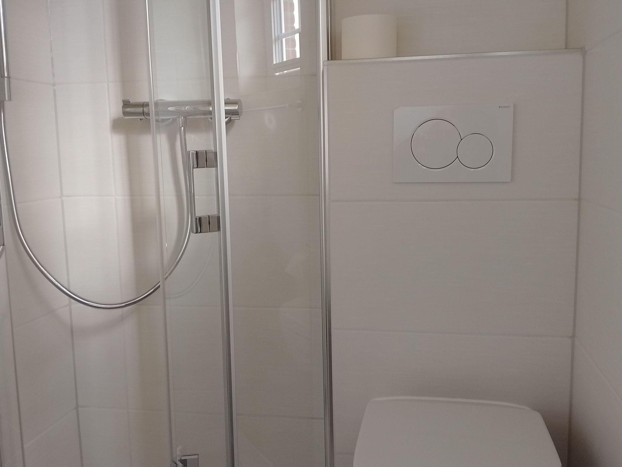 Die Raumaufteilung ist wie folgt: 1 Schlafraum mit Doppelbett, 1 Wohnraum mit Schrankbett, 1 Küchenzeile, 1 renoviertes Badezimmer mit Dusche.