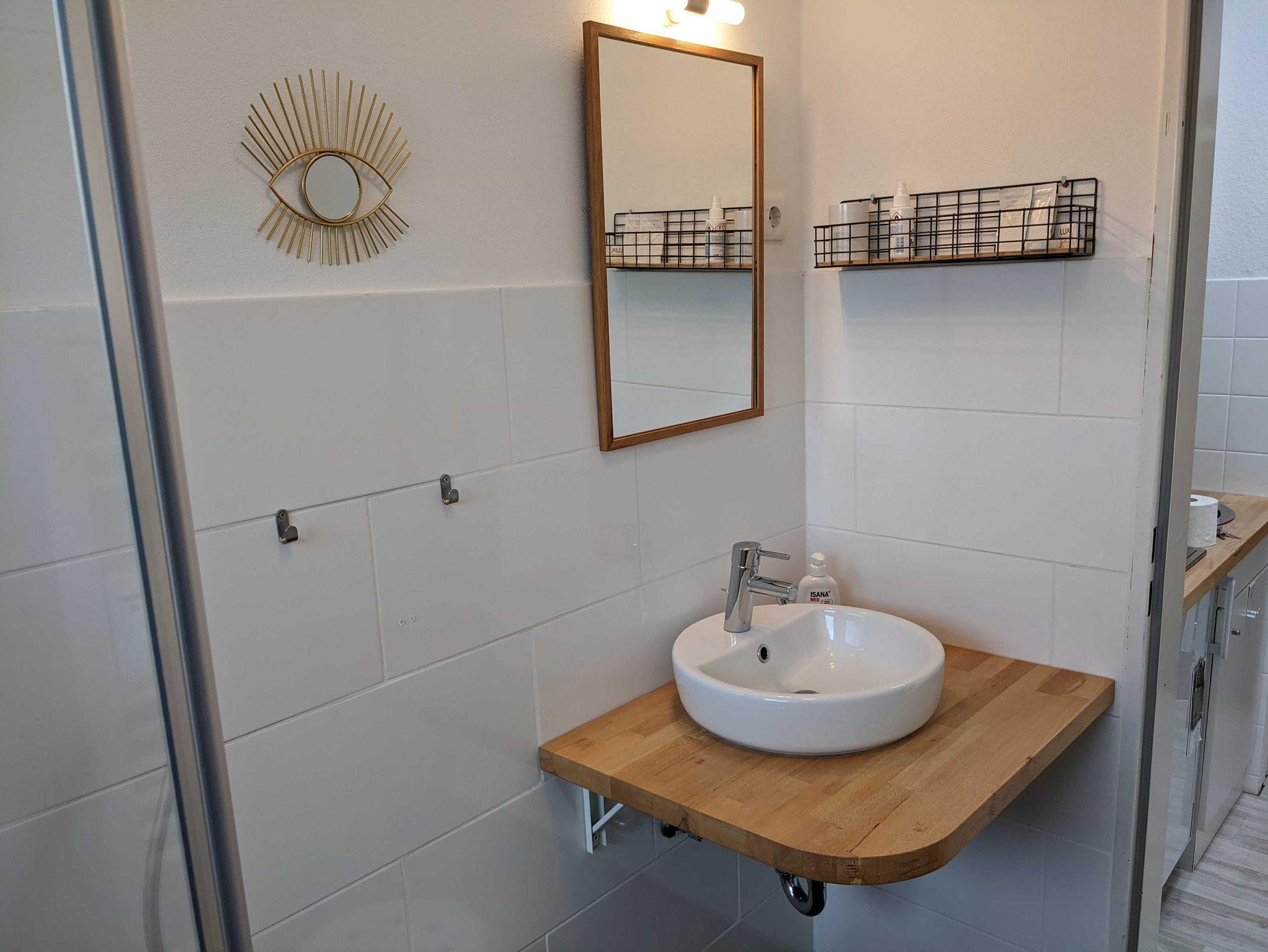 Das schöne, geschmackvoll eingerichtete Einzimmerappartement mit Balkon liegt im Berliner Ring. Die kleine gemütliche Wohnung hat ein Schlafsofa mit einer festen Matratze. Im Eingangsbereich befindet sich die Pantryküche. Das helle, moderne Duschbad verfügt über ein Außen Fenster. Der Balkon ist mit Balkonmöbeln ausgestattet.