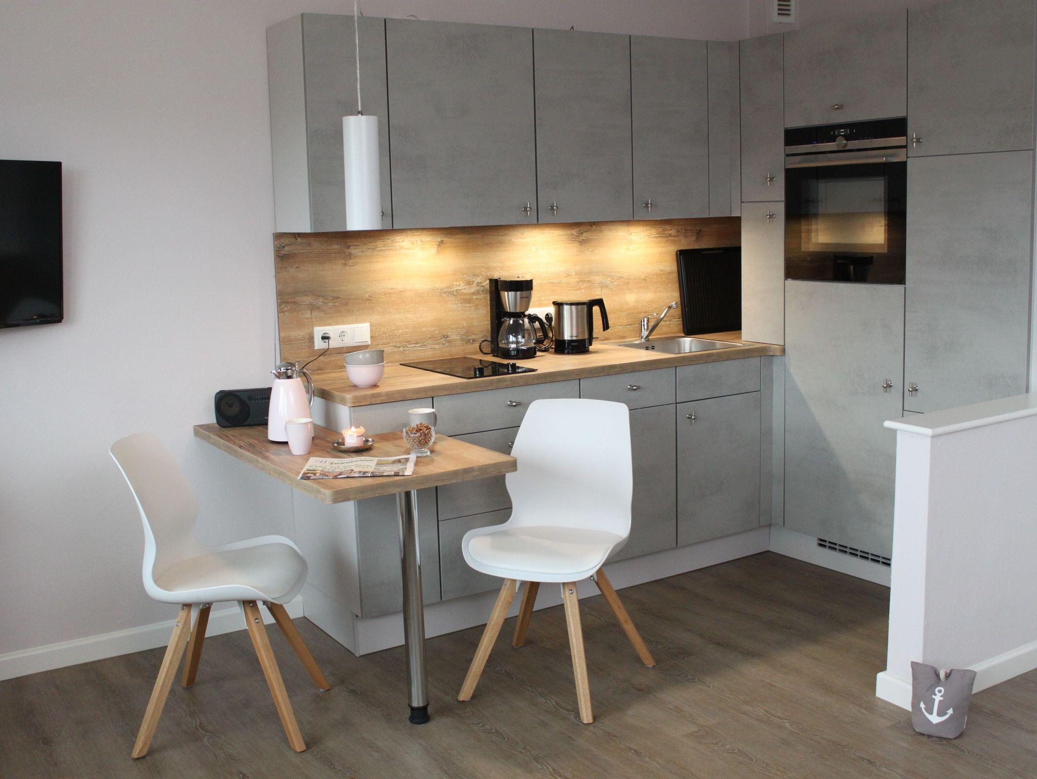 Wohnküche mit 2-Platten Ceranfeld, Backofen, Geschirrspülmaschine, Kaffeemaschine