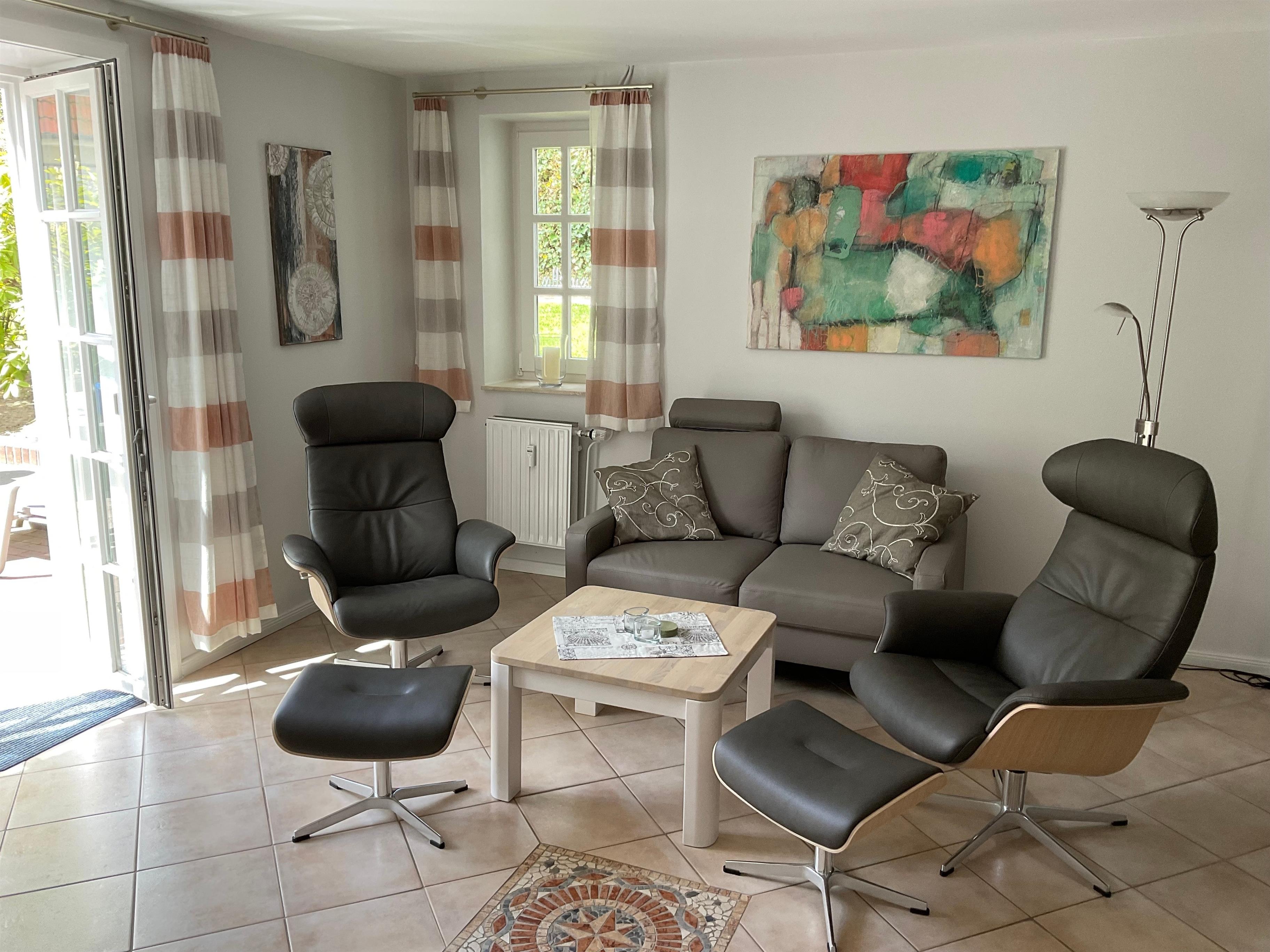 - luxuriöse Relaxmöbel und 50 Zoll TV im Wohnzimmer