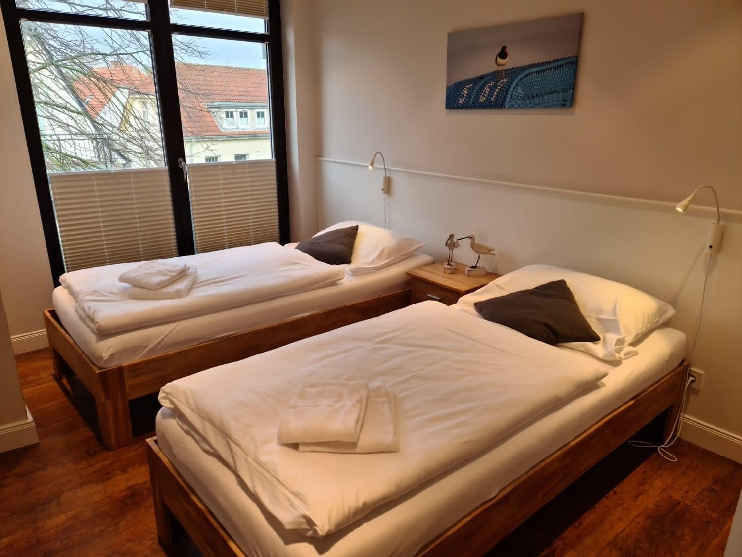 Die exklusiv neu ausgestattete und helle Wohnung verfügt über 2 Schlafzimmer, 1 Wohnzimmer mit integrierter moderner Küchenzeile, sowie ein Duschbad. Ein W-LAN Anschluß steht Ihnen kostenfrei zur Verfügung.