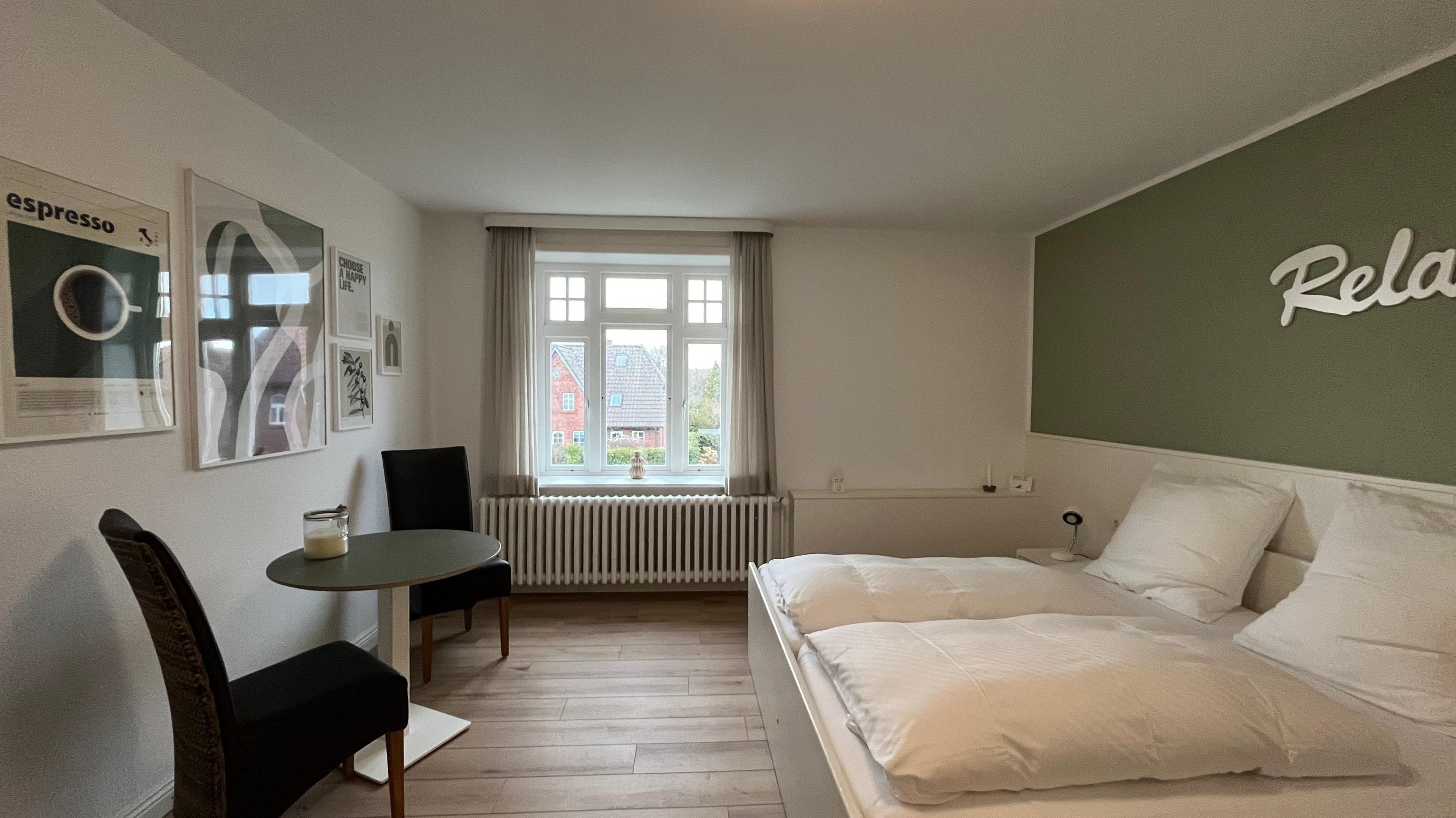 Dieses Doppelzimmer wurde in 2023 renoviert und der Boden mit allergikerfreundlichen Planken ausgelegt. Das Zimmer bietet Ihnen ausreichend Platz und Komfort, um Ihren Aufenthalt zu genießen. Es eignet sich hervorragend für einen entspannten Urlaub in Wyk.