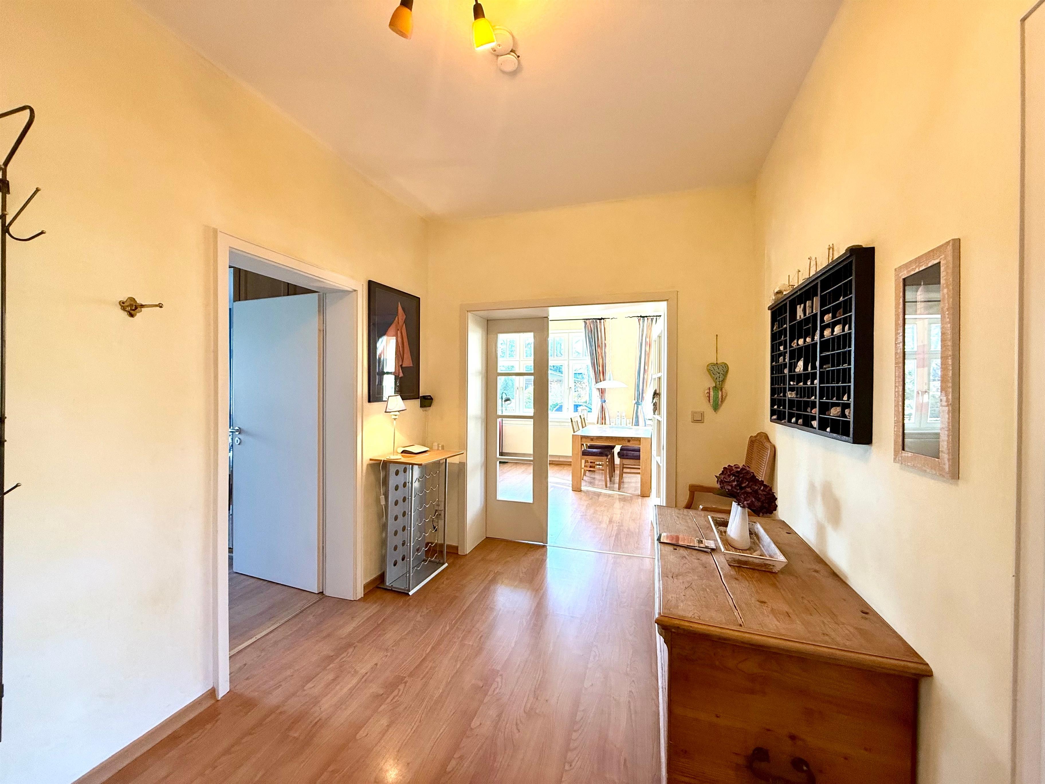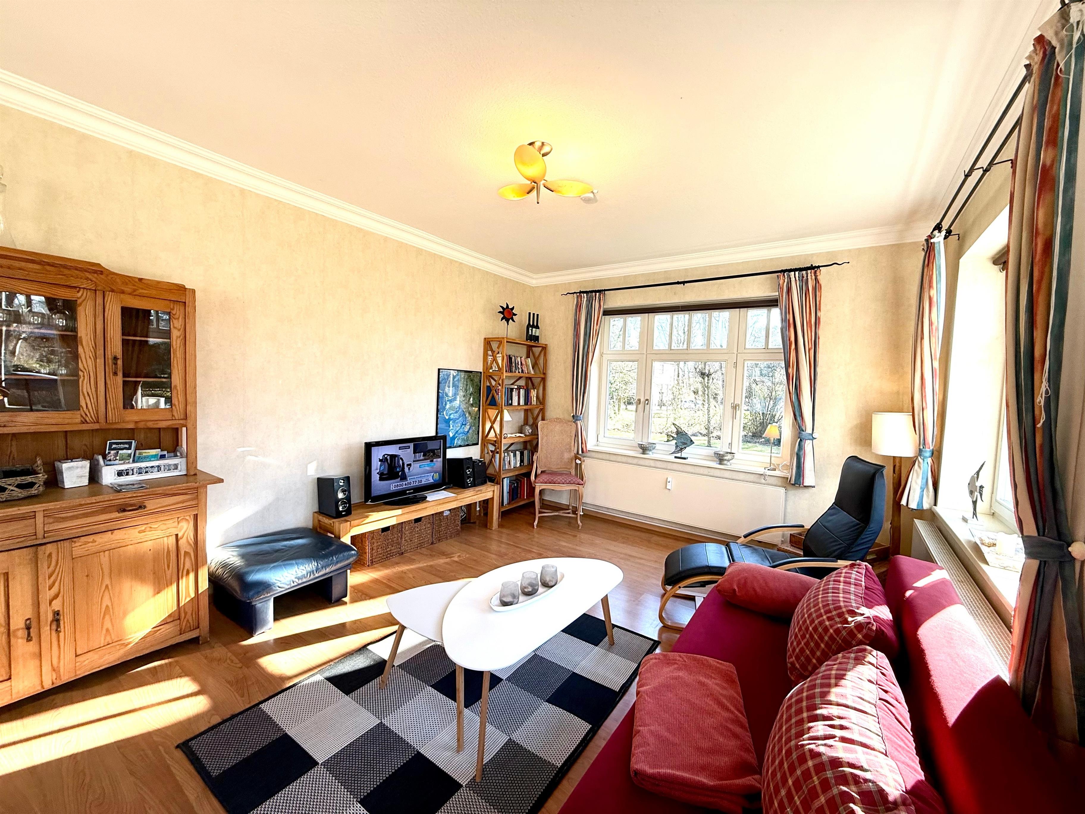 Herzlich willkommen in unserer großzügig geschnittenen 2-Zimmer-Ferienwohnung in Wyk auf Föhr. Für 2 Erwachsene und ein Kind ist hier auf 72 m² alles auf einen wunderschönen Urlaub eingestellt. Die lichtdurchflutete Ferienwohnung befindet sich im Erdgeschoss und liegt am Rande von Wyk am Ende der verkehrsberuhigten Strandstraße auf einem einladend großen, grünen Grundstück. Möchten Sie den Tag nicht im Garten verbringen, machen Sie sich auf den Weg zum schönen Südstrand mit perfektem Zugang ins weitläufige Watt. In nur wenigen Minuten gelangen Sie zu Fuß oder auch per Rad zum Wasser. Der unmittelbar angrenzende Grüngürtel des alten Stadtparks von Wyk lädt mit wunderschönen Wegen zum Spazierengehen ein. Ein Bäcker befindet sich in unmittelbarer Nähe, zum Kinderspielplatz "Löwenhöhle" gelangen Sie in 10 Minuten zu Fuß. Genießen Sie einen 20 minütigen Spaziergang durch die Wälder zum quirligen Wyker Stadtzentrum oder starten sie Ihre gemütliche Fahrrad- oder Joggingtour durch Wald und Wiese nach Nieblum. Entspannung und Erholung haben Sie hier zu jeder Jahreszeit.