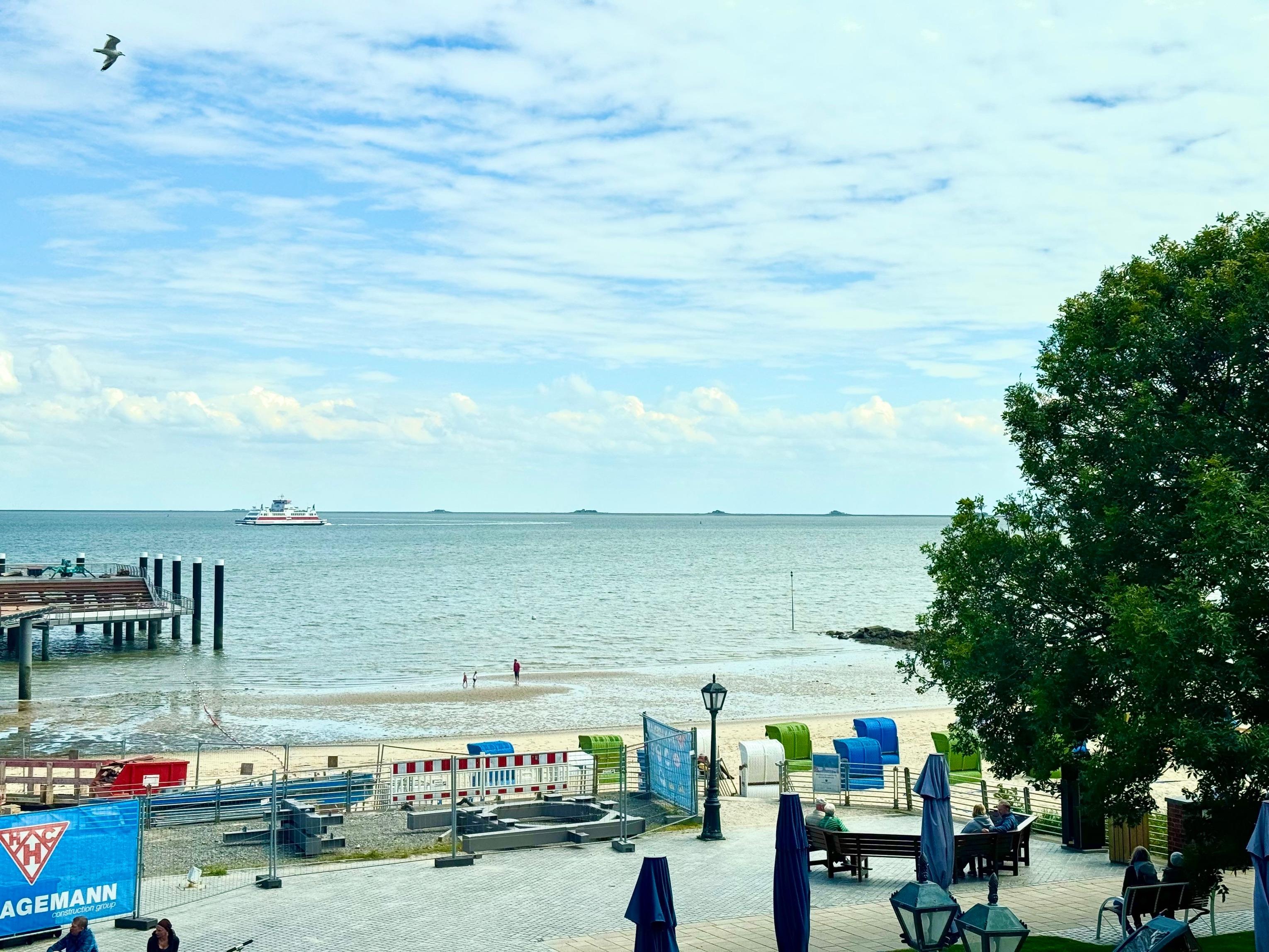 Auf ca. 50 m² ist hier Platz für 2-3 Erwachsene + Kind im 2.Obergeschoss des Haus Meerblick, direkt am Sandwall an der Wyker Promenade.