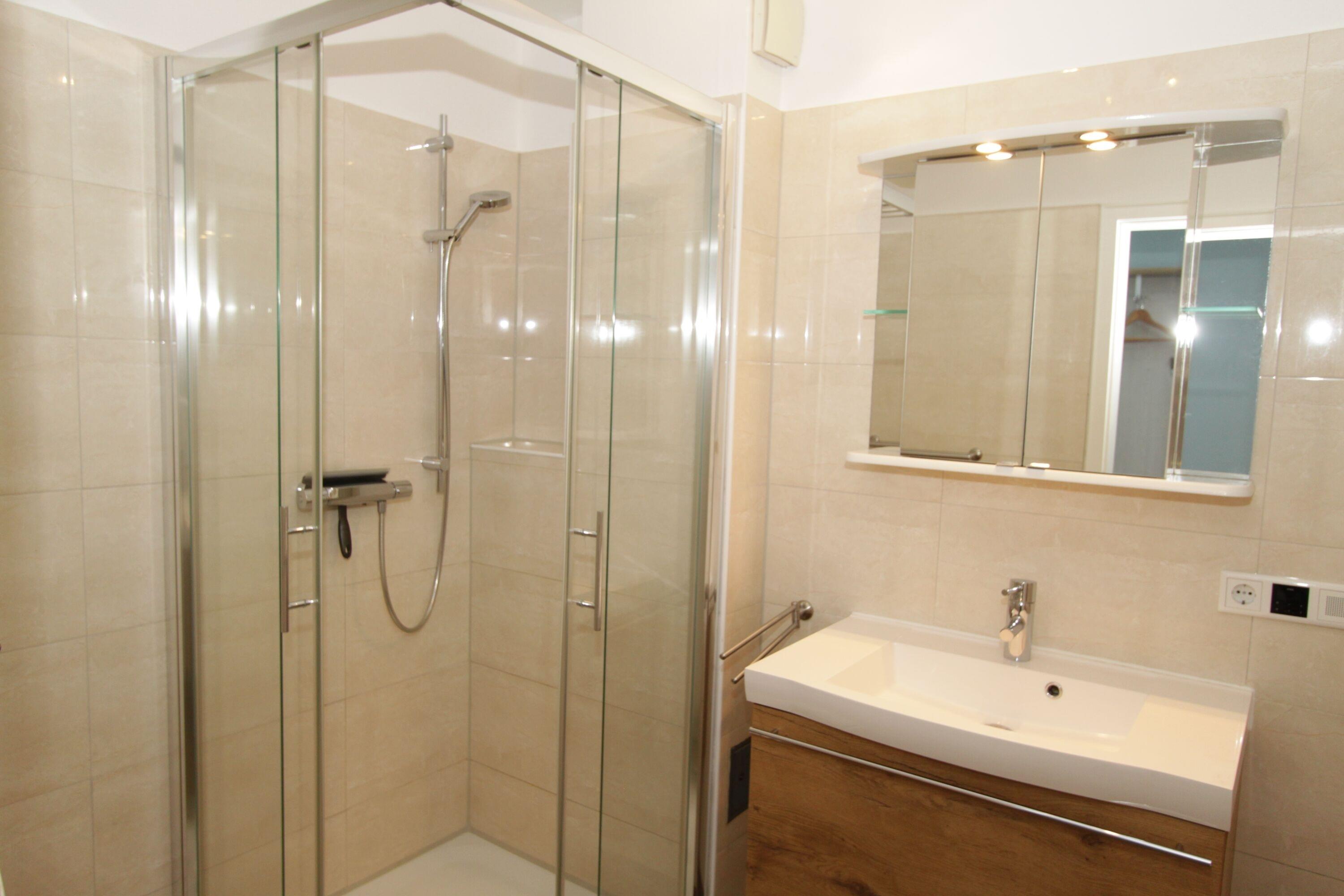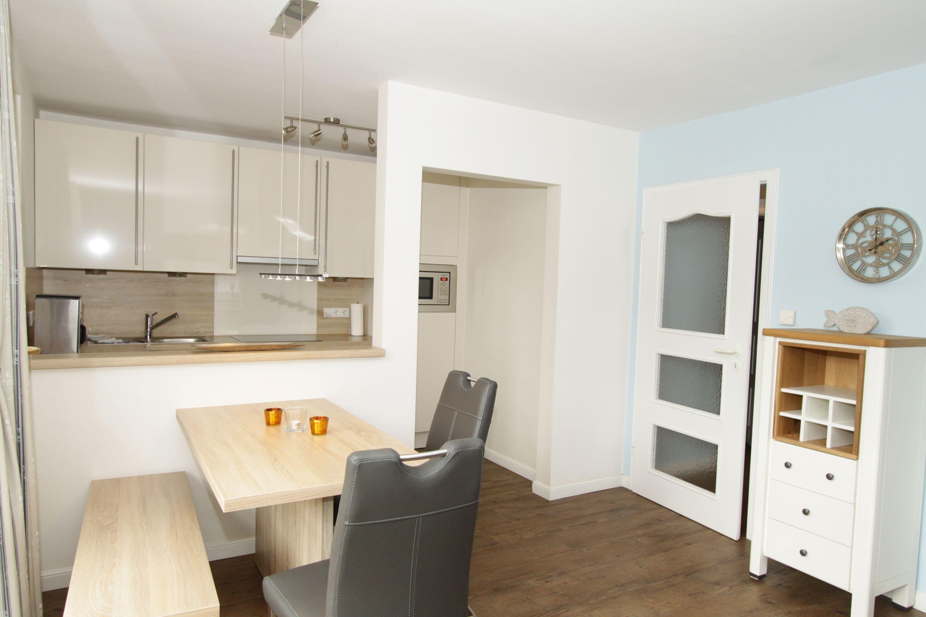 Die Wohnung befindet sich im Erdgeschoß und verfügt über eine Terrasse mit Strandkorb und Blick ins Grüne. Im Wohnbereich gibt es eine voll ausgestattete Küche, eine gemütliche Couch, ein Duschbad und ein Schlafzimmer. Zur Wohnung gehört ein PKW-Stellplatz, Ihre Fahrräder können Sie direkt am Haus abstellen.