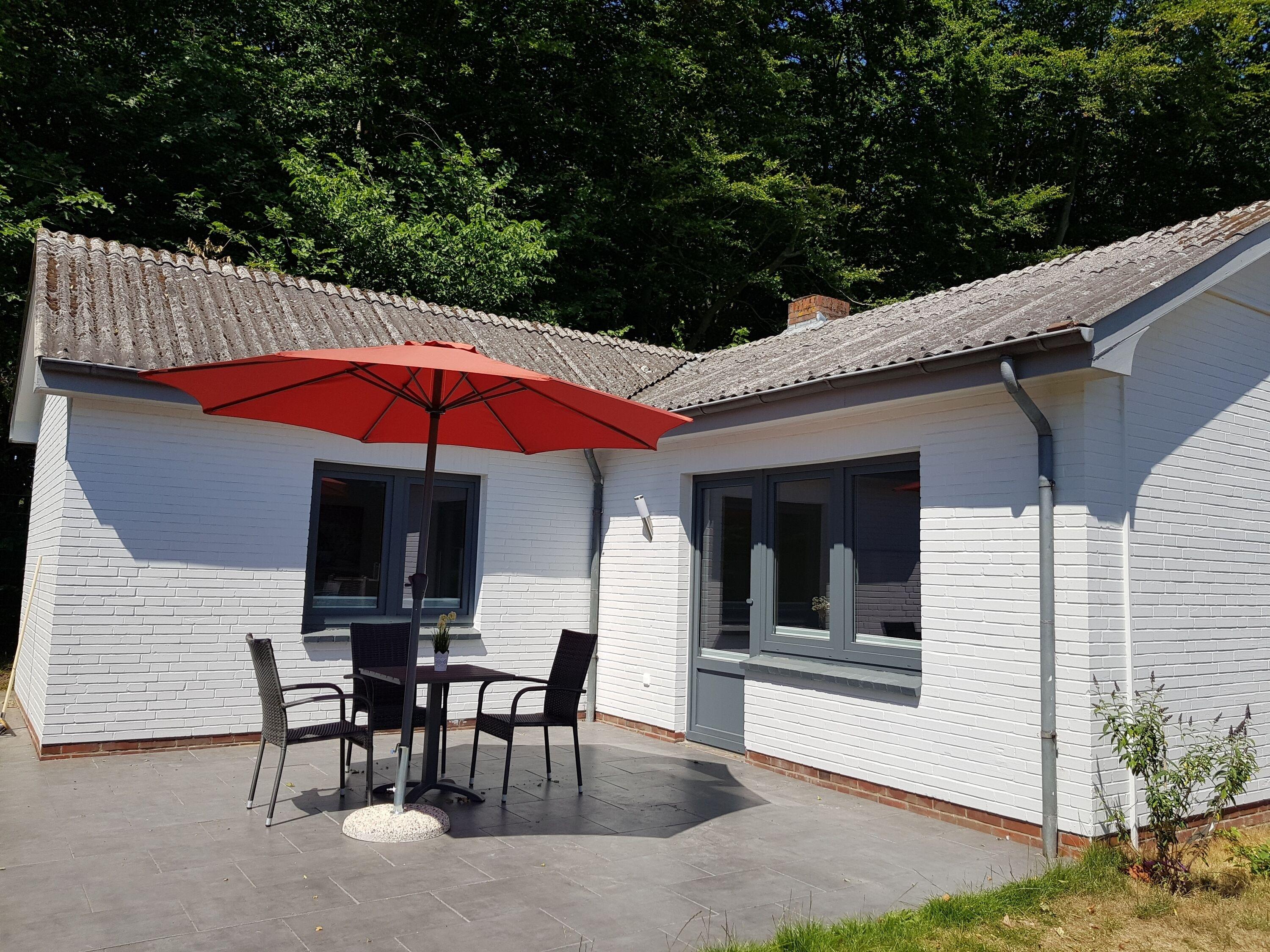 Nur wenige Gehminuten vom Ortskern und vom Strand entfernt befindet sich auf dem hinteren Teil des ca. 800 m² großen Grundstücks unser freistehender Bungalow "Hunnenhütt" = "Hundehütte". Zur Ferienanlage "Kleingarns Nest" gehört auf dem vorderen Teil des Grundstücks ein Zweifamilienhaus mit einer weiteren Wohnung im EG (Whg. "Peerstall"). Der Bungalow verfügt über einen eingezäunten Garten sowie einen direkten Zugang zum Stadtwald. Die großzügige Süd-Terrasse lädt zum Sonnen und Entspannen ein.