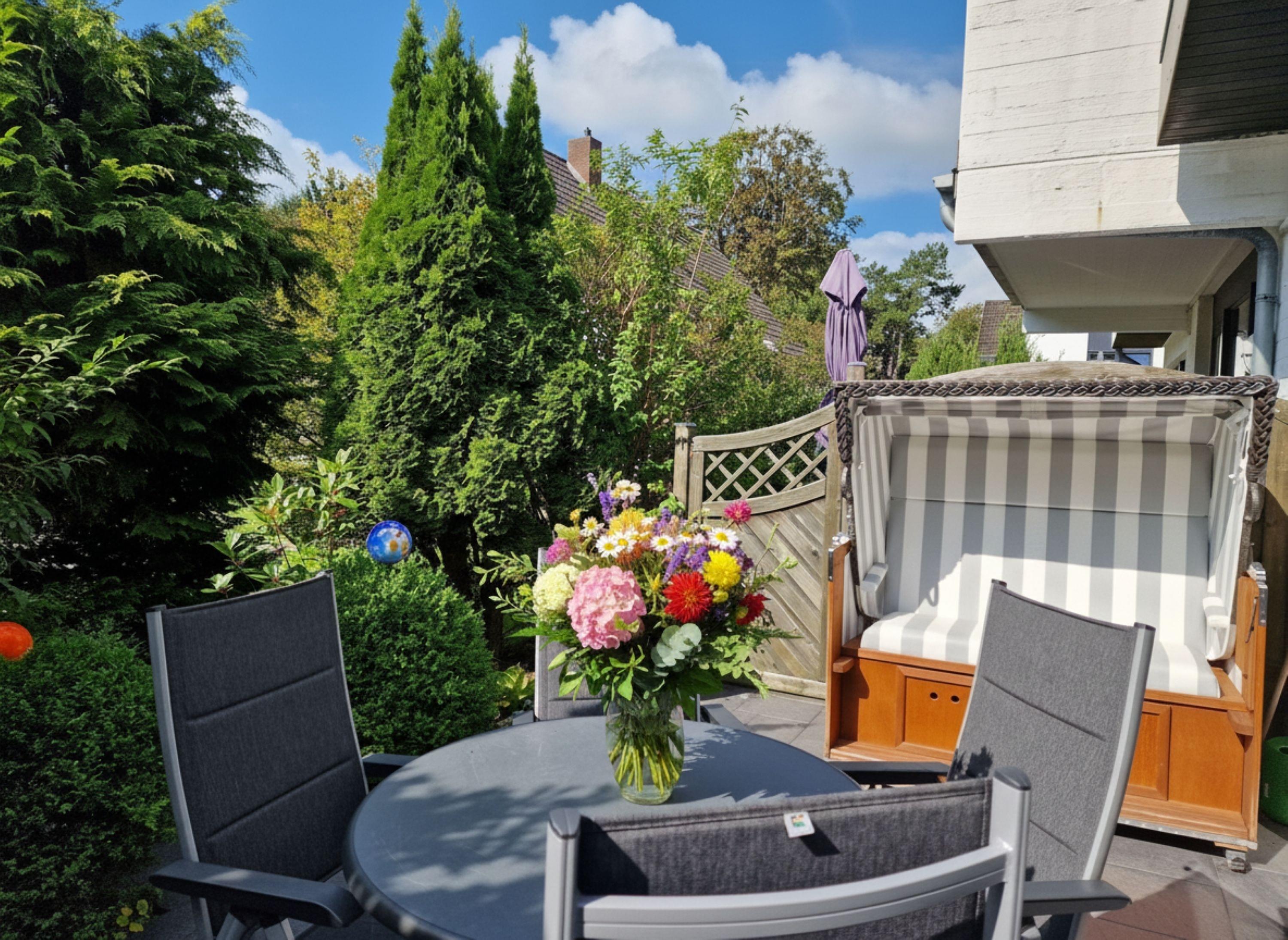 Das Wohnhaus liegt in unmittelbarer Nähe des Kurparks am Südstrand. Über die Kurpromenade oder die Parkwege ist die Innenstadt auch sehr gut in 25 Minuten Fußweg zu erreichen. Die Wohnung ist liebevoll und gemütlich eingerichtet. Sie liegt im Erdgeschoß des Wohnhauses. Ab Mittags kann man auf der sonnigen Steinterrasse (Süd-West-Ausrichtung) mit einer Tasse Kaffee und leckeren Stück Torte Verweilen. Abends mit einer Brotzeit und ein Glas Wein die Abendsonne untergehen sehen.