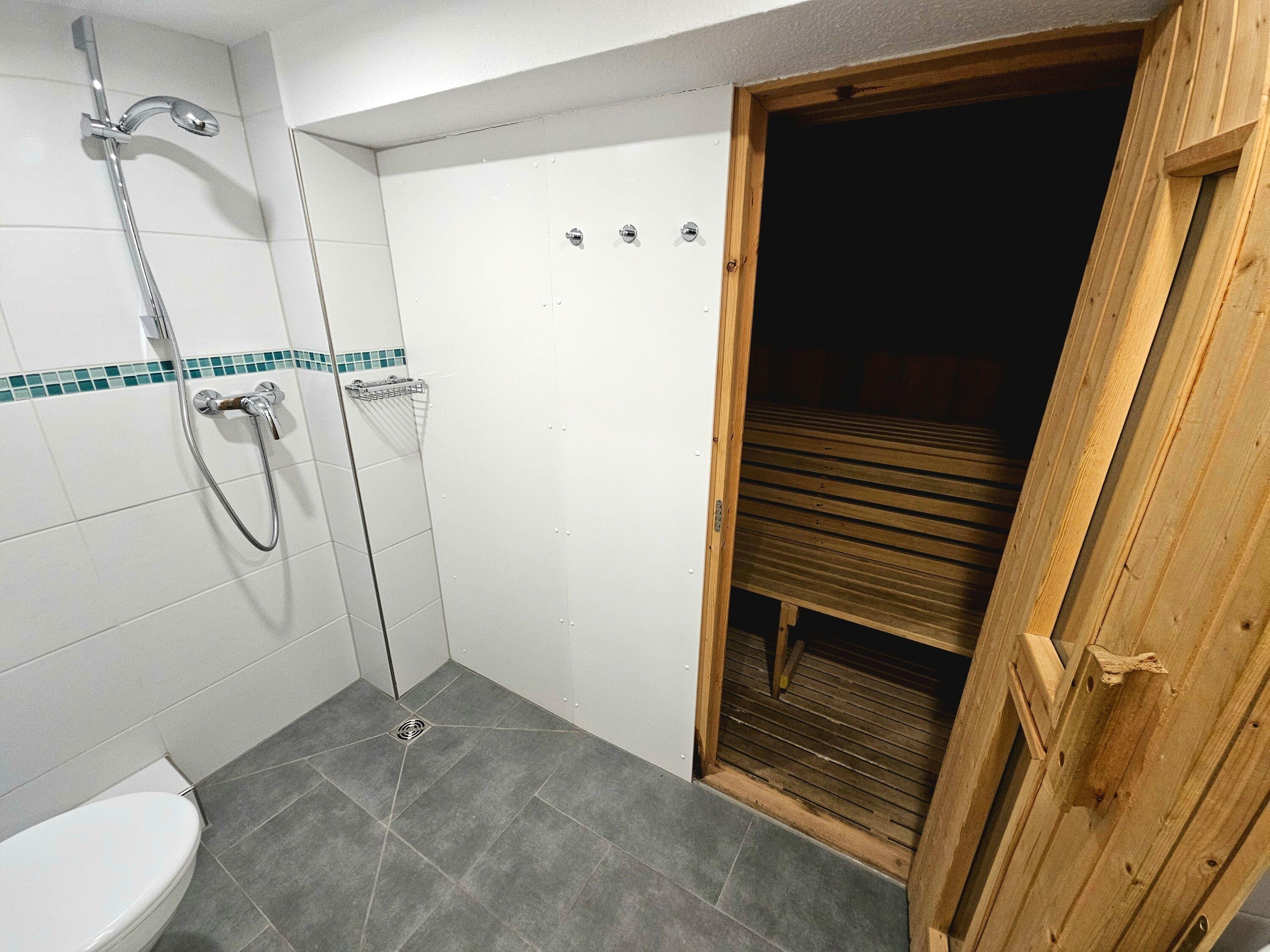 Im Keller des Hauses befindet sich eine Sauna zur gemeinschaftlichen Nutzung sowie ein Waschraum mit Waschmaschine und Trockner. Ihre Fahrräder können Sie hinter dem Haus geschützt unterstellen.