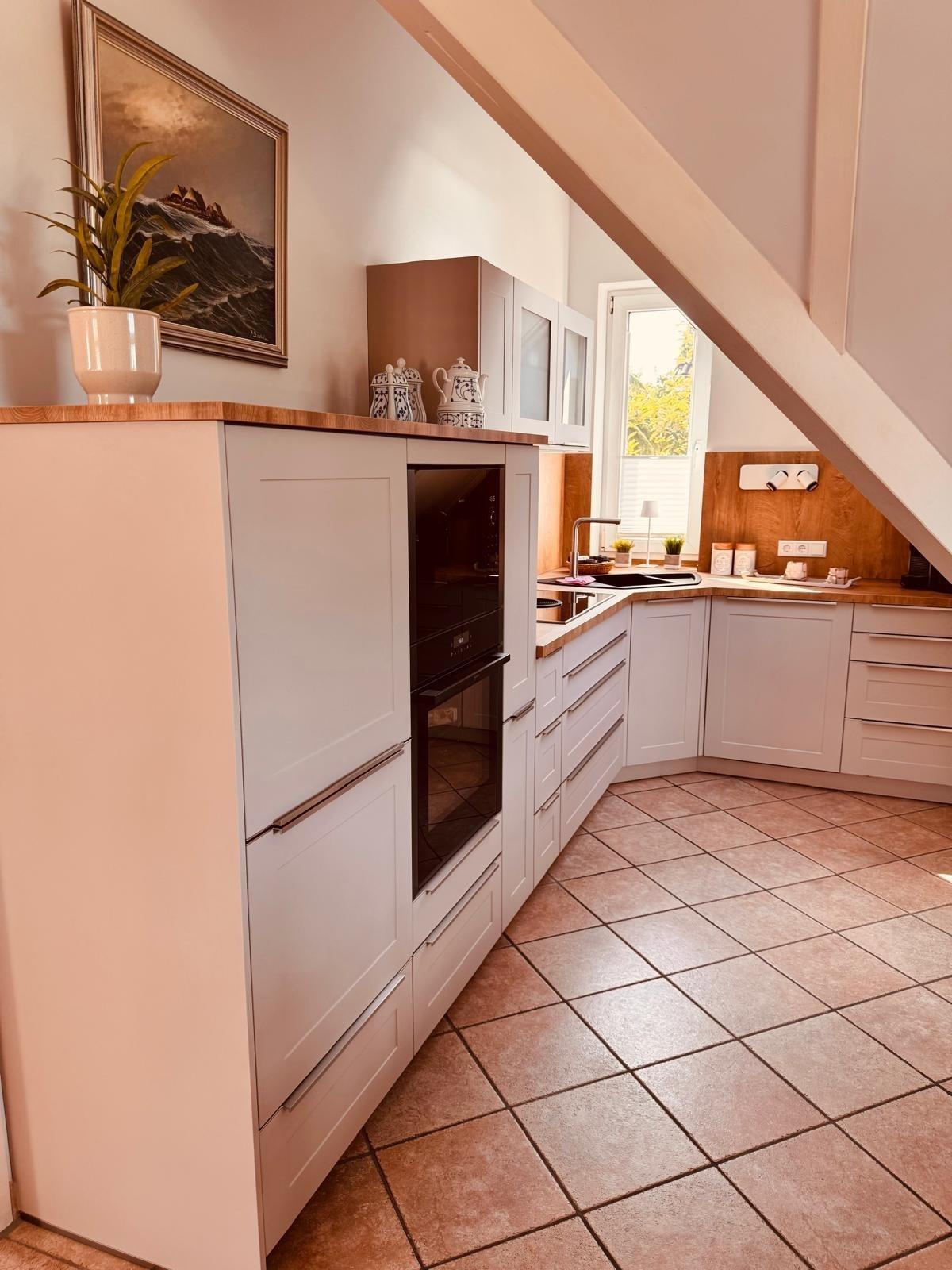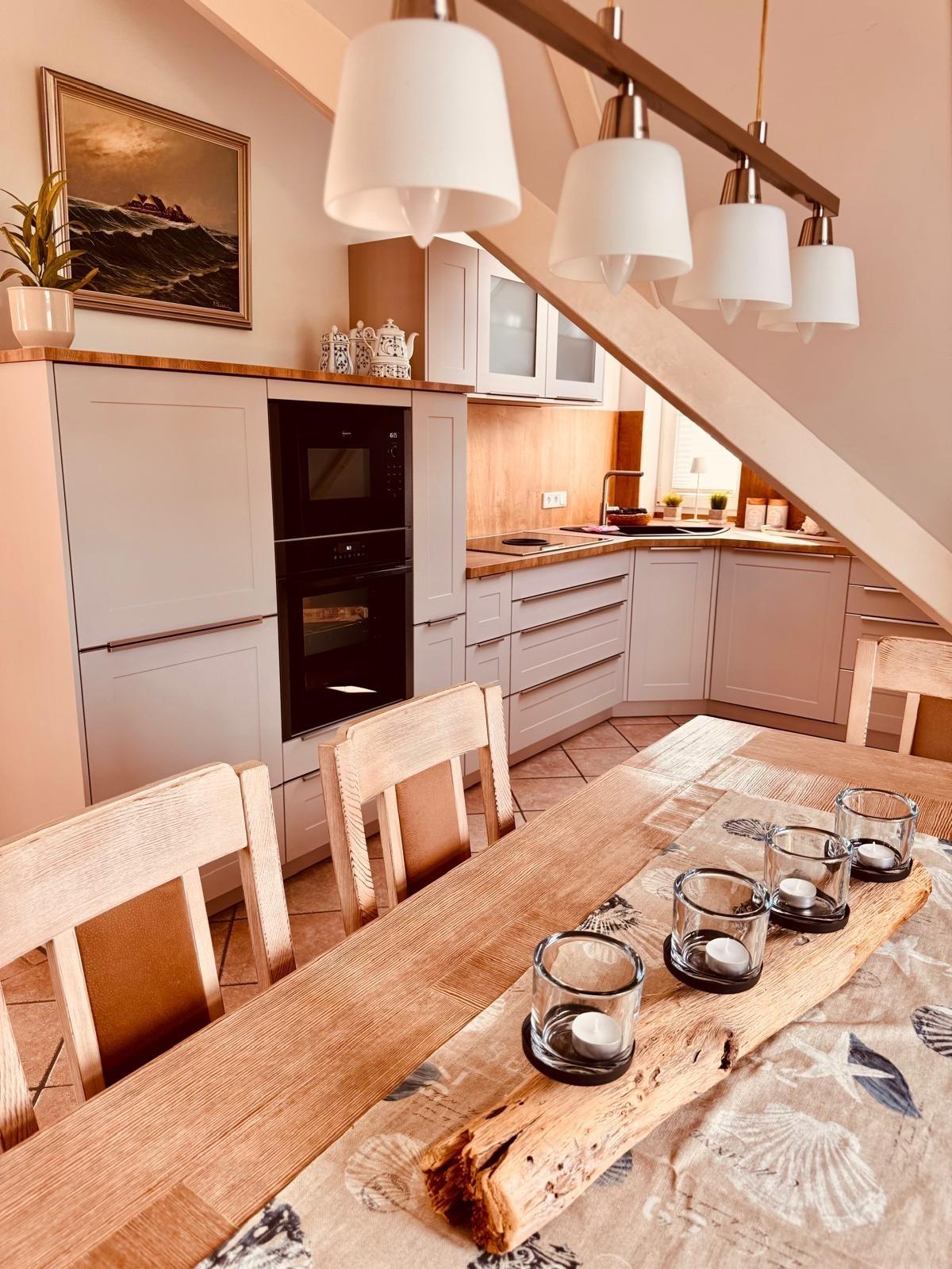 Die offene Küche ist bestens ausgestattet und bietet alles, was Sie für die Zubereitung köstlicher Mahlzeiten benötigen.