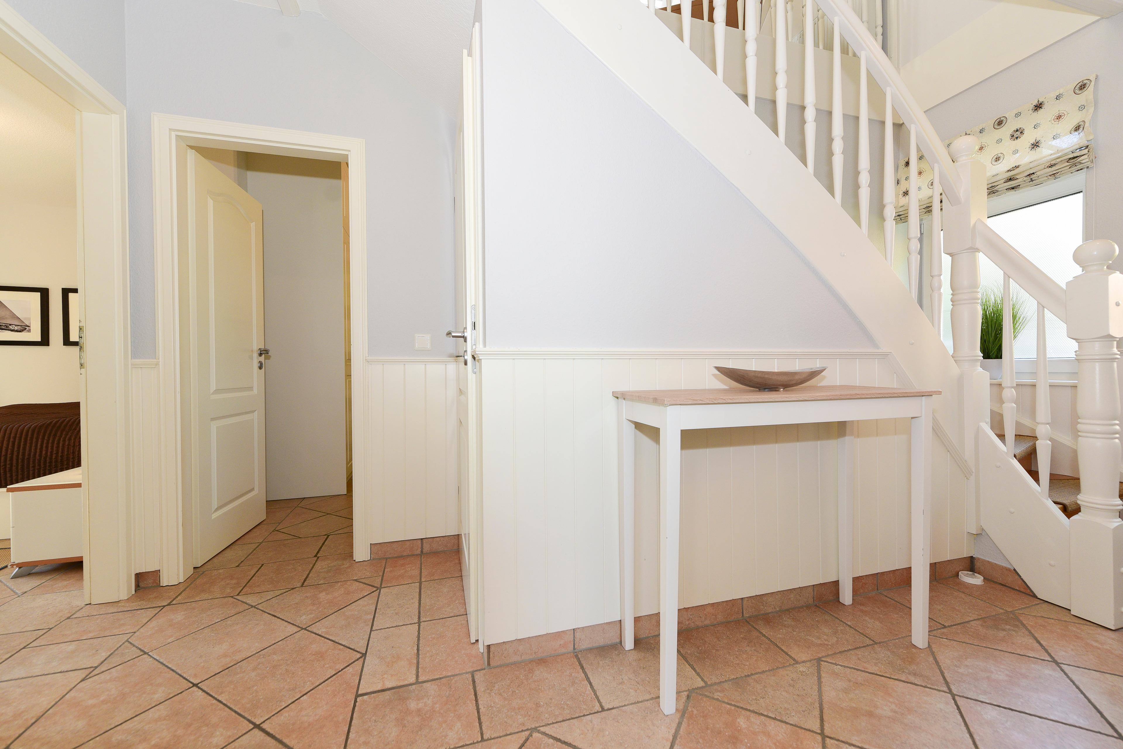 Vom Flur aus gelangen Sie direkt zum Strandhus, wo Sie sich auf der Terrasse entspannen oder in den eingewachsenen Garten treten können. Der Strand ist nur wenige Meter entfernt und lädt zu einem erfrischenden Bad in der Nordsee ein.
