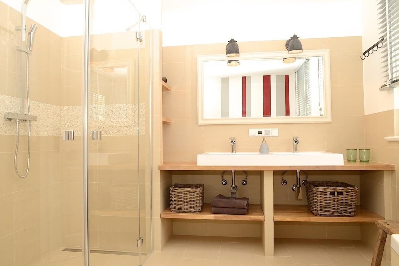In der "Lachmöwe" befinden sich zwei Schlafzimmer – eines mit einem Boxspringbett und ein weiteres mit zwei Einzelbetten, die auf Wunsch auch zu einem Doppelbett umgestellt werden können. Ein modernes Badezimmer mit Badewanne und Lichttherapie sowie einer Regendusche sorgt für eine entspannende Auszeit.