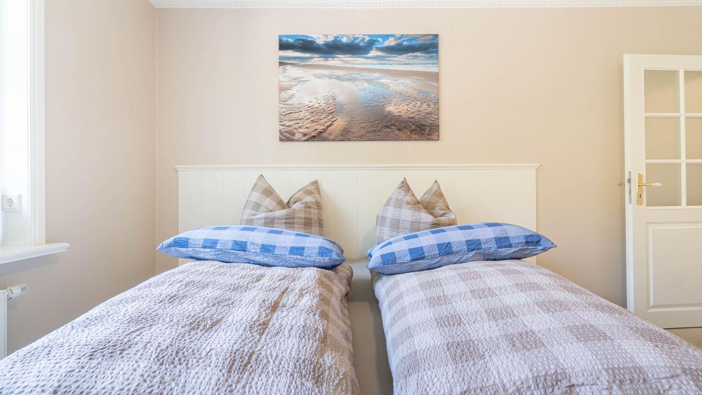 Die Ferienwohnung 1 erstreckt sich über das gesamte Erdgeschoss und bietet durch seine zwei Schlafzimmer ausreichend Platz für bis zu vier Personen zuzüglich einer Kleinkinderaufbettung.