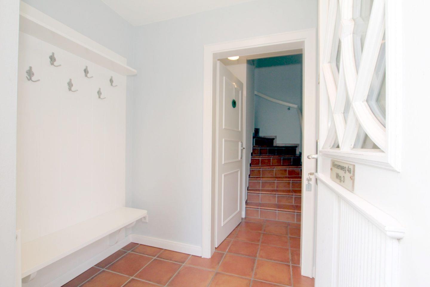 Ferienhaus in Wyk auf Föhr, Wiesenweg 4 a, Whg Nr. 3, Nichtraucherwohnung. 3-Zimmerhausscheibe (ca. 100 qm) über 2 Etagen mit Südterrasse und Garten. Kategorisiert mit 4 Sternen. WOHNZIMMER Sitzecke mit 2 er Ledercouch und 2 Sessel. BAD: Dusche/WC. SEPARATE KÜCHE: Vollausgestattet mit Eßplatz. In der 1. Etage befindet sich das SCHLAFZIMMER 1: Doppelbett (1,60 X 2m), Einbauschrank. SCHLAFZIMMER 2: 2 Einzelbetten ( 1 X 2m), Kleiderschrank. BAD: Wanne/WC, Waschmaschine und Trockner. Im Dachgeschoss befindet sich die Sauna. Das Haus ist mit Fliesen und Laminatboden ausgelegt. Treppengitter ist oben vorhanden, kindersichere Steckdosen. Internetanschluss DSL über W-Lan. Zum Strand und Wellenbad ca. 3 Minuten Fußweg. Zur Innenstadt ca. 10 Min. Fußweg. Haustiere auf Anfrage und gegen Gebühr erlaubt!