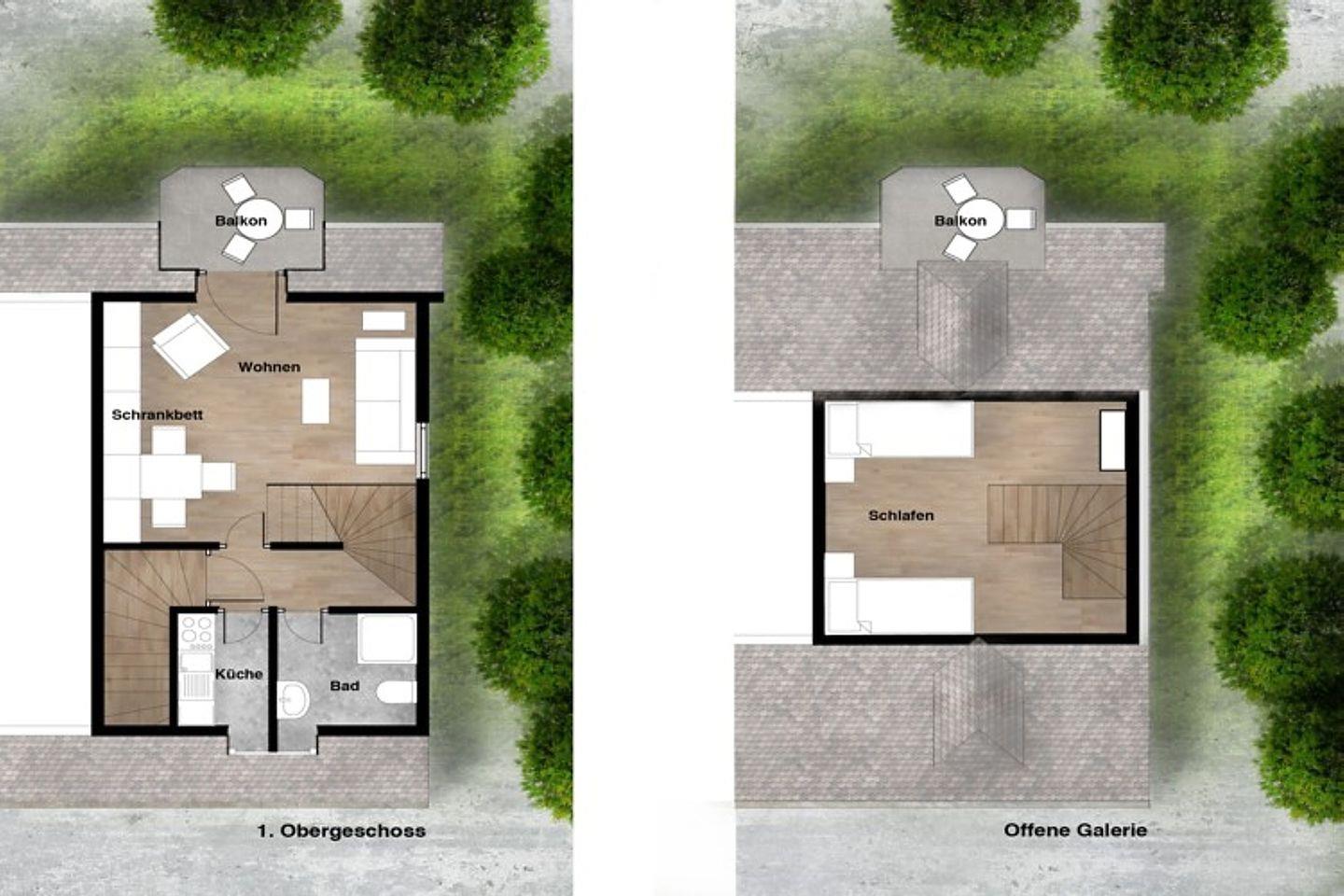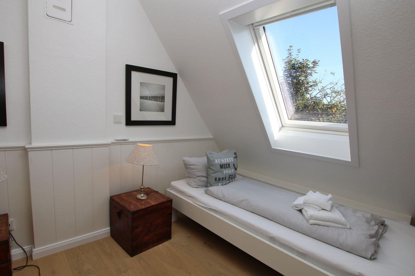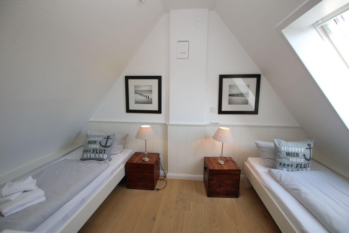 - Vom Flur führt eine offene Treppe ins Dachgeschoss, dort stehen 2 Einzelbetten