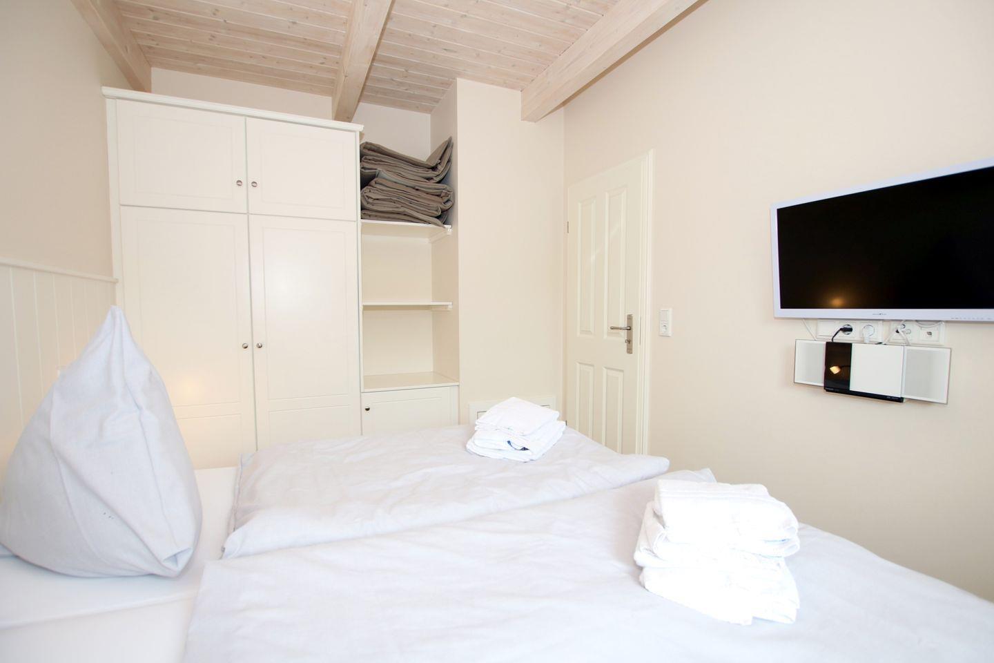 - Schlafzimmer im EG mit Doppelbett, SAT/TV, Kleiderschrank