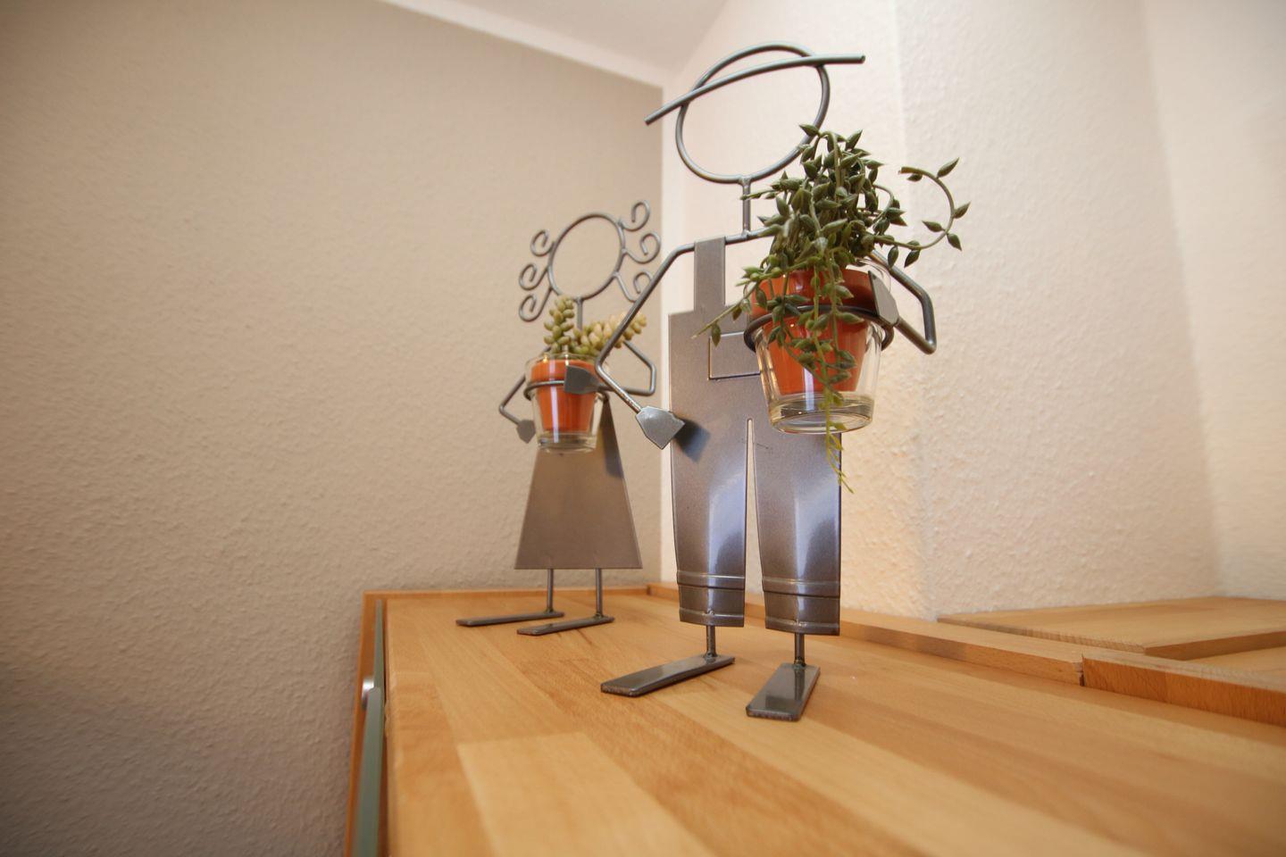 Sehr geschmackvoll eingerichtete Erdgeschosswohnung. WOHNZIMMER mit Ledercouch über Eck, Esstisch, 4 Stühle und moderne Küchenzeile. FLUR mit Garderobe und Abstellraum unter der Treppe. BAD mit Dusche, WC und Waschbecken. SCHLAFZIMMER mit Doppelbett ( 1,80x 2m) und Kleiderschrank, sowie LED-Leselicht dimmbar mit USB Ladebuchse und Ablage für Buch oder/und Brille. Im KINDERZIMMER ist ein Etagenbett mit jeweiliger Ablage für Buch oder/und Brille
