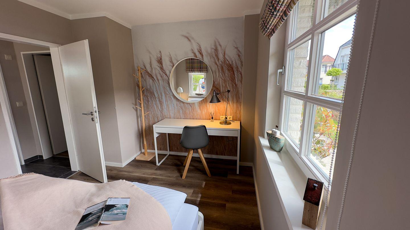 Die zur Meerseite gelegene Ferienwohnung 1 im Haus Fünen am Südstrand verfügt über 1 Schlafzimmer und 1 Duschbad und bietet somit komfortabel Platz für bis zu 4 Personen zuzüglich einer Kleinkinderaufbettung.