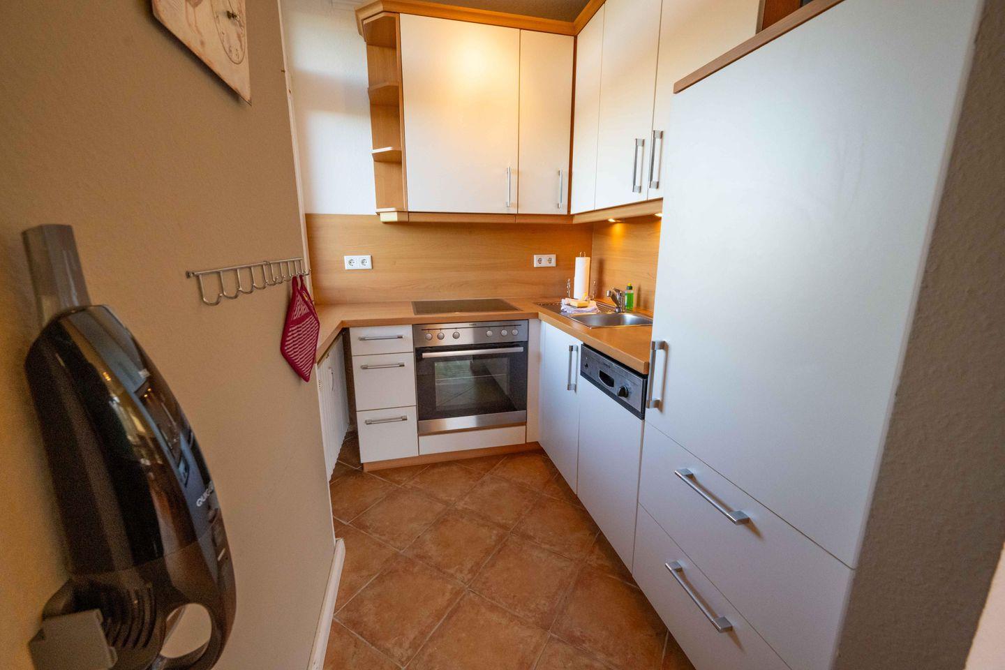 Die Ferienwohnung ist im dritten Obergeschoss gelegen und verfügt über einen großzügigen Wohn- und Essbereich mit offener Küche, ein Duschbad und zwei Balkone. Über den Wohnbereich gelangen Sie auf den Westbalkon, welcher Ihnen einen eingeschränkten Blick auf die Nordsee bietet. Den kleinen Nordbalkon mit Blick auf den nahe gelegenen Flugplatz erreichen Sie über das Schlafzimmer.