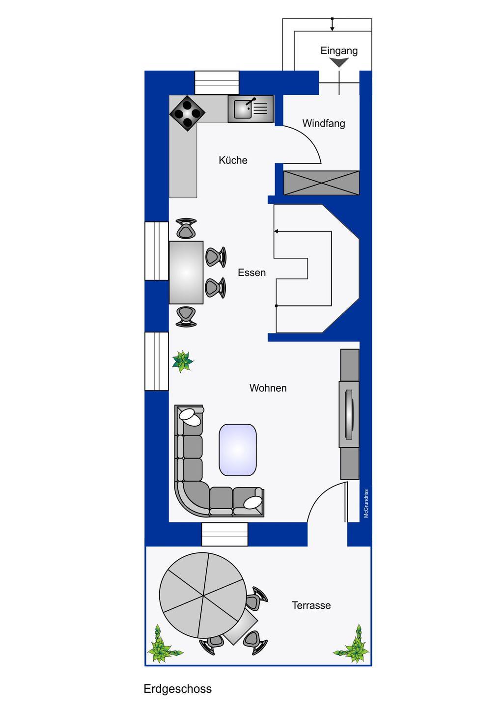 Das 75 qm große Reihenhaus (mit 4**** zertifiziert) erstreckt sich über 3 Etagen und bietet moderne Gemütlichkeit. Im offenen Erdgeschoss befinden sich der Wohn-, Ess- und Küchenbereich mit einer neuen, hochwertig ausgestatteten Küche. Der helle Wohnbereich führt direkt zum Garten mit Südterrasse, wo Sie entspannte Stunden im Freien verbringen können. Eine breite Wendeltreppe verbindet die Etagen.