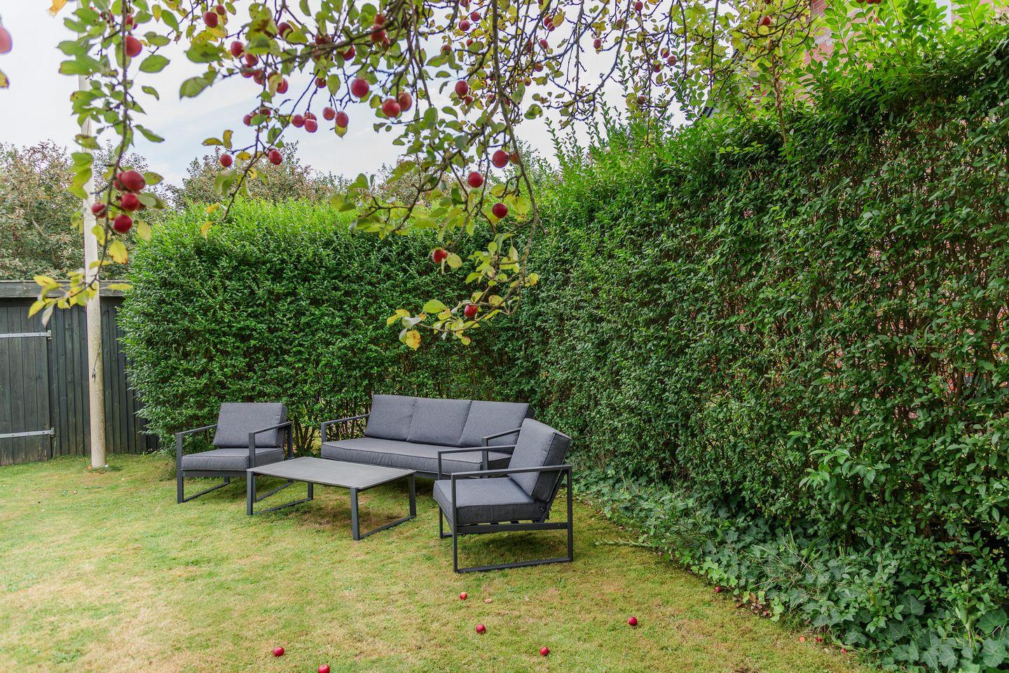 Der Garten ist von einer blickdichten Hecke umgeben. Ein PKW-Stellplatz rundet das Angebot ab.